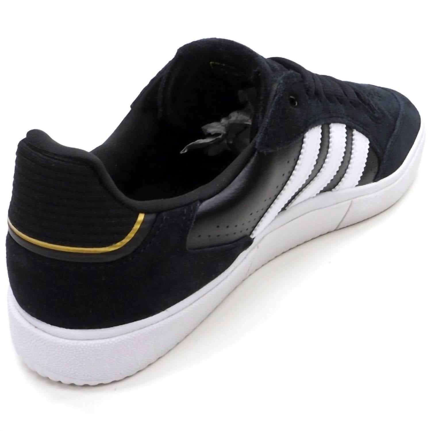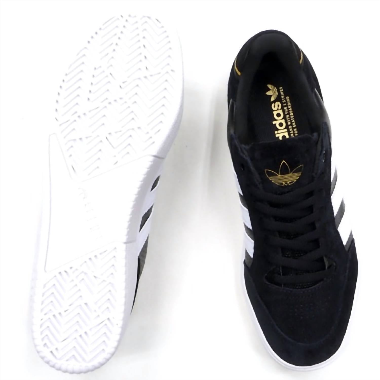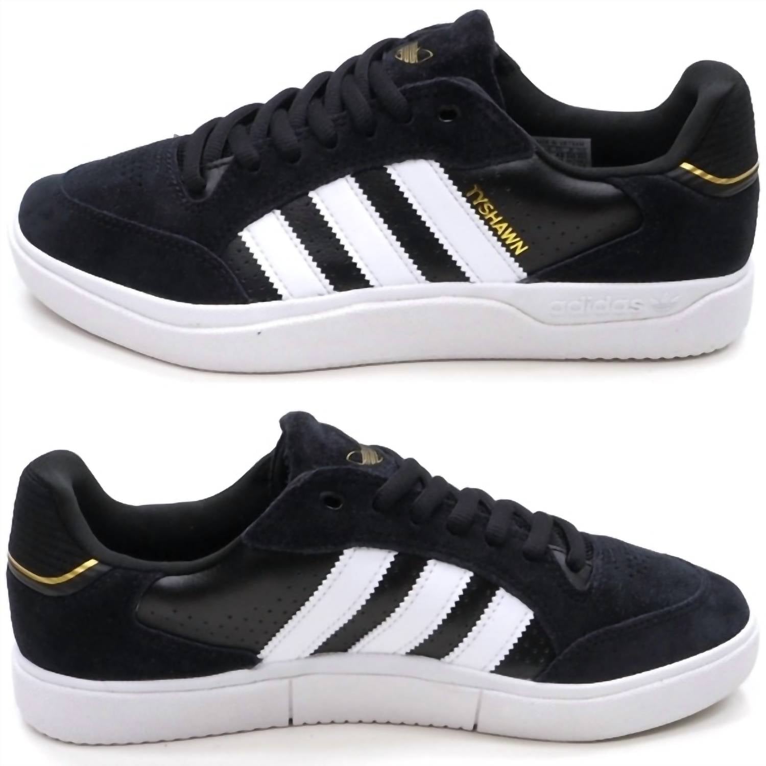 Elevate your sneaker collection with the Men's Tyshawn Low Suede Sneaker by adidas, a sleek and stylish option crafted for both fashion and function. Featuring a premium suede upper complemented by synthetic leather 3-Stripes, this shoe embodies the perfect blend of athletic inspiration with a touch of luxury. Its durable Adituff toe reinforcement, round toe shape, and moulded Adiprene sockliner ensure optimal comfort and support during any fitness or workout routine. Finished with a grippy rubber cupsole, these Black/White sneakers are a must-have for any athleisure enthusiast.