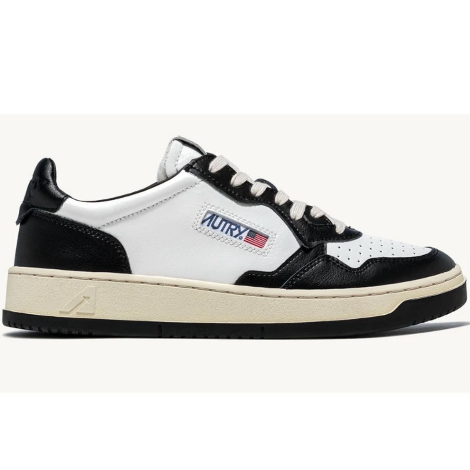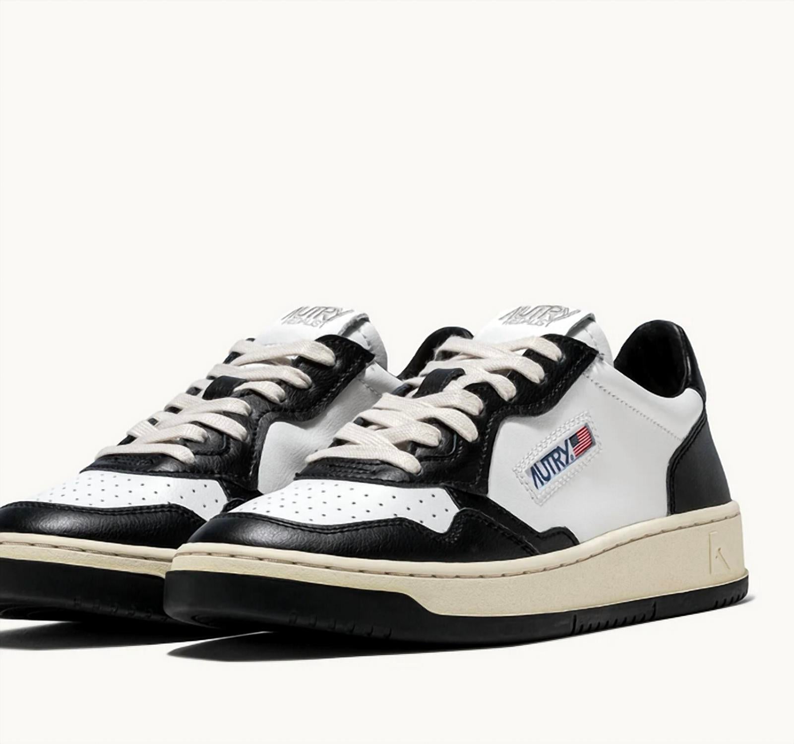 Discover the AUTRY Men's Medalist Low Leather Sneaker, a stylish choice for your summer athleisure wardrobe. Crafted from 100% smooth grain calf leather, this sneaker features a panelled design with contrasting panel details for a modern edge. It provides superior comfort with a perforated toebox, branded insole, and terry-cloth lining, all set atop a durable rubber sole. Closure: Front lace-up fastening. Perfect for fitness or workout occasions.