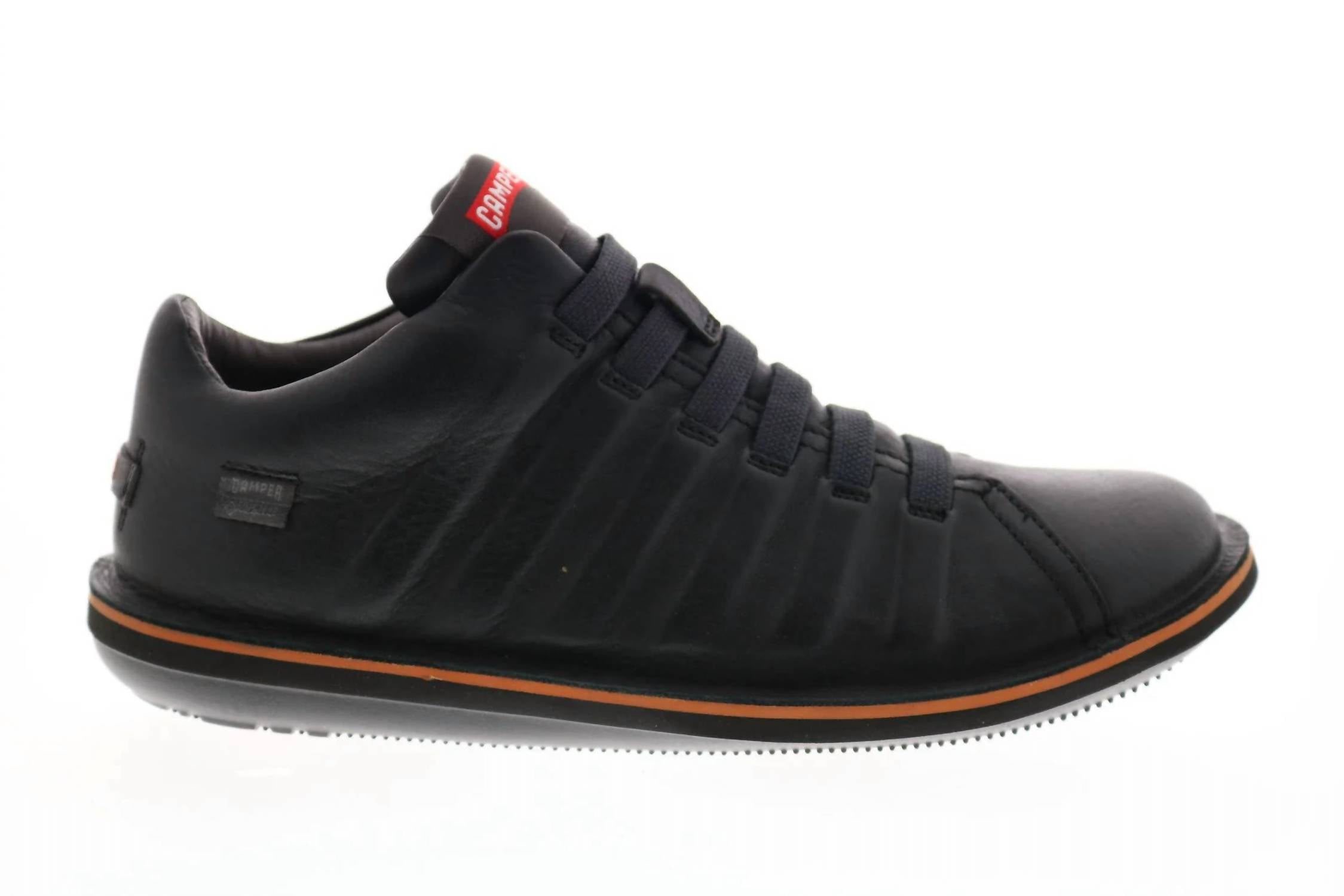 Step out in style with the Men's Camper Beetle Sneakers, a blend of creativity and quality from the renowned Spanish brand. Crafted in high-quality black leather, these sneakers promise both comfort and durability. With a medium width and a modern round toe, they offer a perfect fit for everyday wear. Ideal for streetwear and vacation, these flat-heeled shoes are your summer go-to for versatile fashion. Model Number: K300005-011.