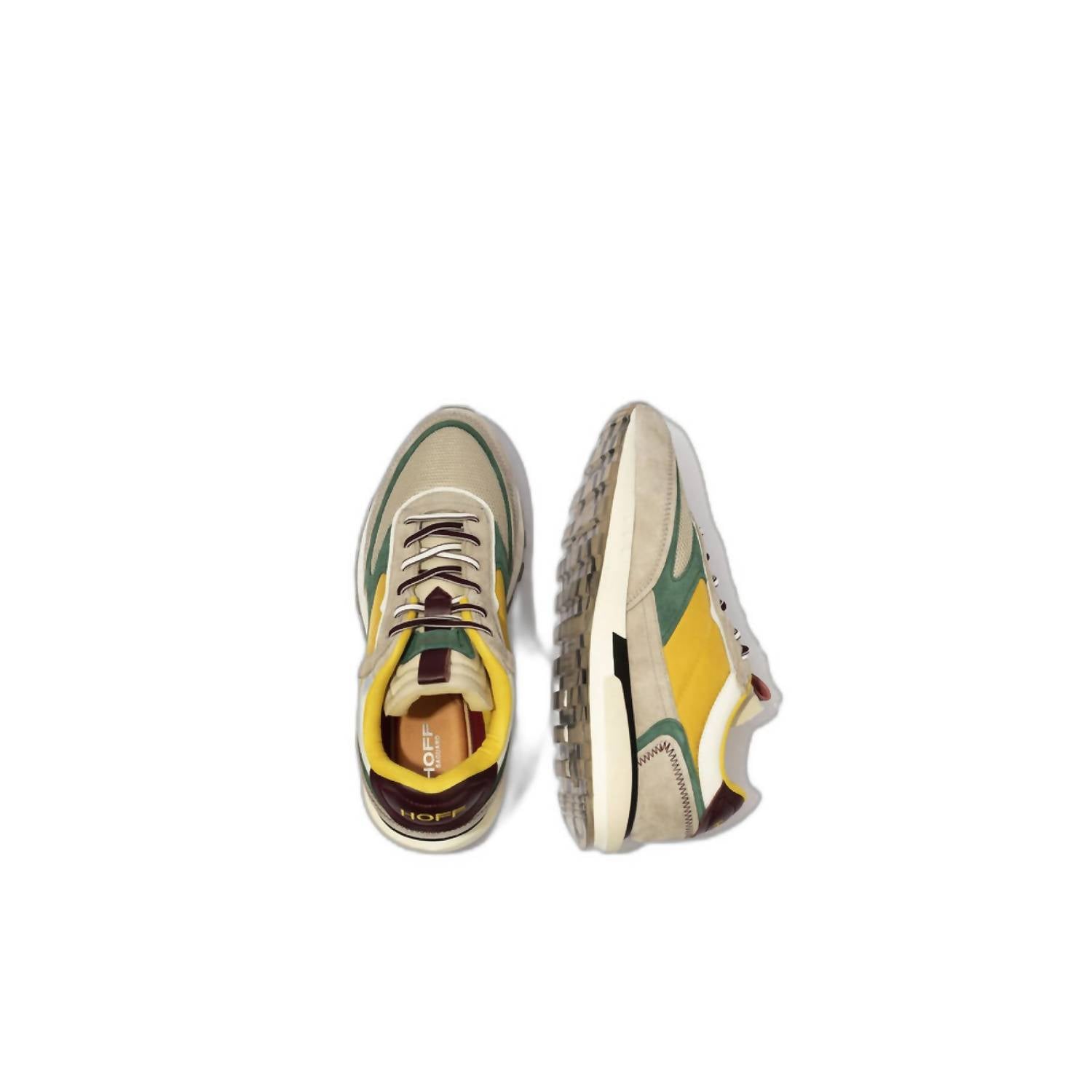 Step out in style with HOFF's Men's Saguaro Sneakers, a vibrant addition to any wardrobe. These multi-colored sneakers in yellow, tan, and green are crafted with a blend of leather, suede, and nylon for durability and a sleek look. The cleated, chunky outsole ensures optimal traction, while the memory foam insole offers superior comfort with every step. Complete with EVA midsole, these sneakers are a standout choice for Cinco de Mayo celebrations or everyday wear.