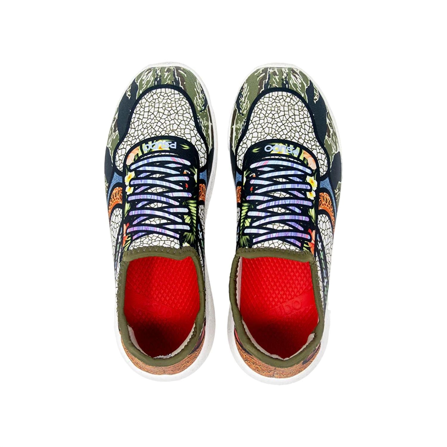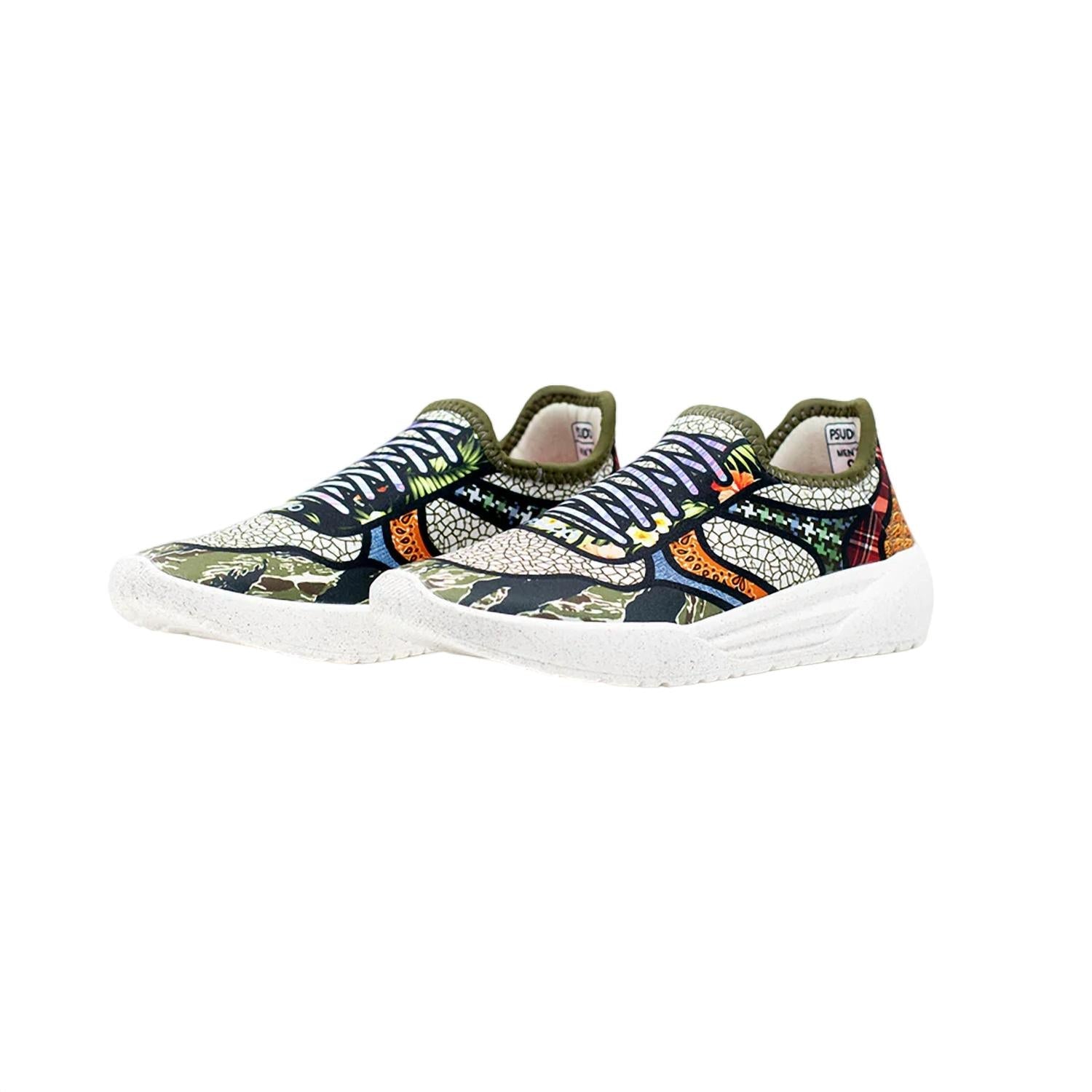 Its printed laces, slip-on style, and arch-supporting comfort make this artful lunar-inspired design. No break-in period. No laces to trip you up. Breathable and sweat-wicking upper. Made to be worn with or without socks. Anatomically correct arch support to cradle your foot and heel. Anti-microbial insole. Machine washable.