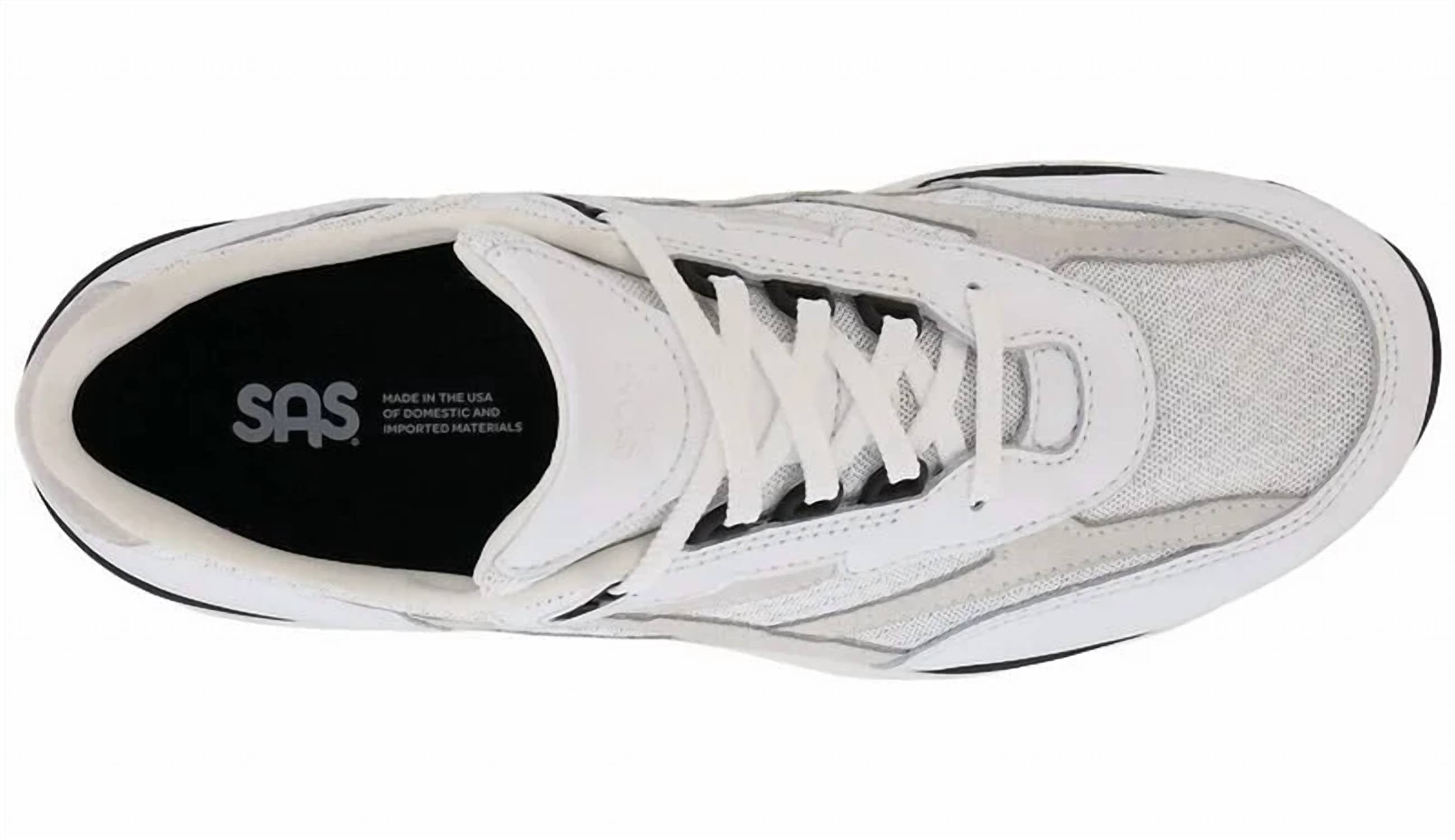 Meet the Men's Journey Mesh Lace Up Sneaker from SAS, crafted for both performance and style in a versatile Saint color. Featuring a breathable leather and mesh upper designed to follow the natural shape of your foot, these sneakers offer unparalleled comfort. The unique SAS EZ Lace™ System ensures easy wearability while the SAS CoolSTEP™ Footbed keeps your feet dry and cool all day. Enjoy superior shock absorption with the TRIPAD® Technology and firm support with the SAS Arcfit™ Heel Stabilizer. Heel height is 1.75 inches, and they are perfect for the fashion-forward athleisure trend. These medium width sneakers are crafted for a round toe shape, ideal for adult men.
