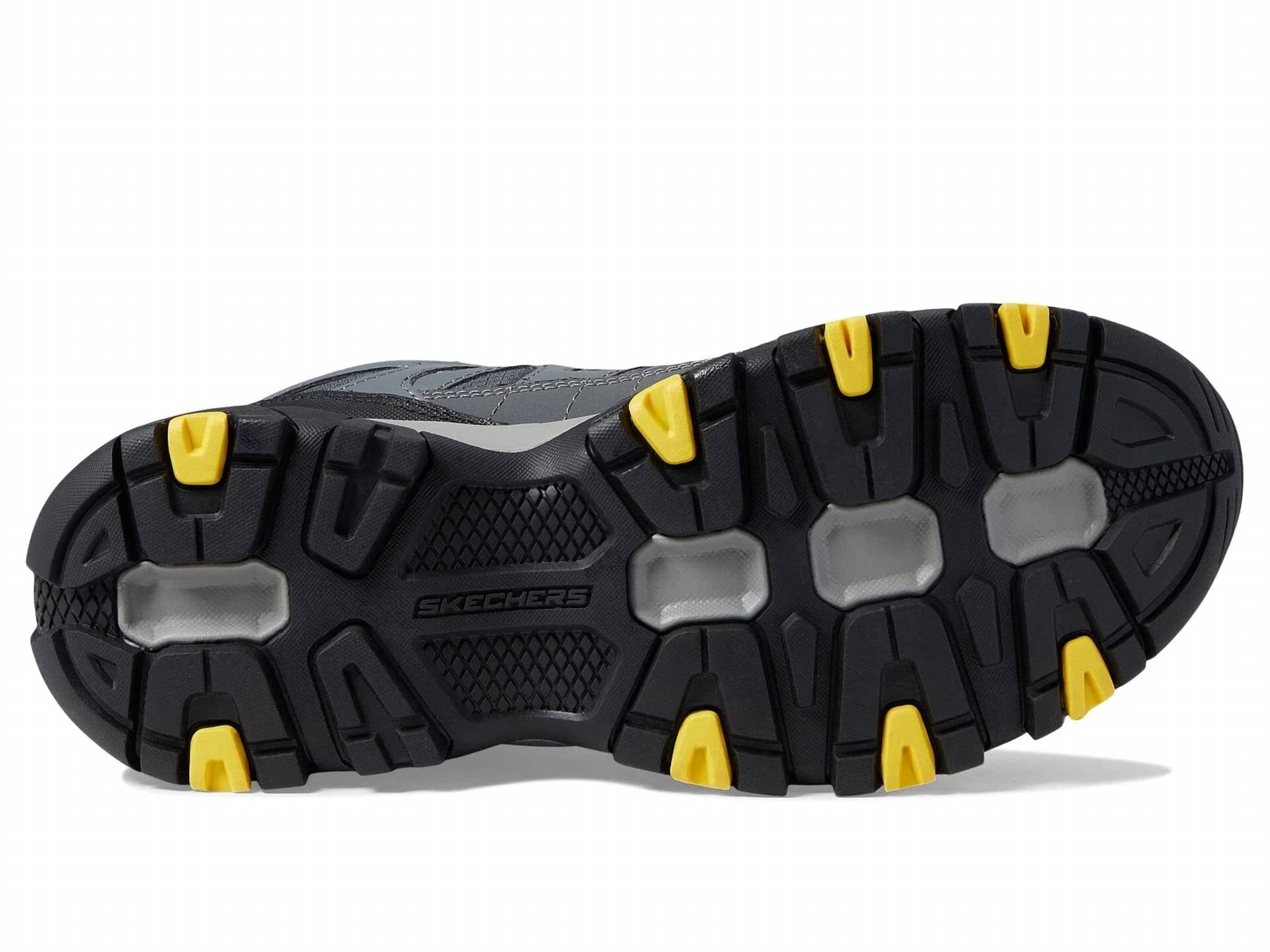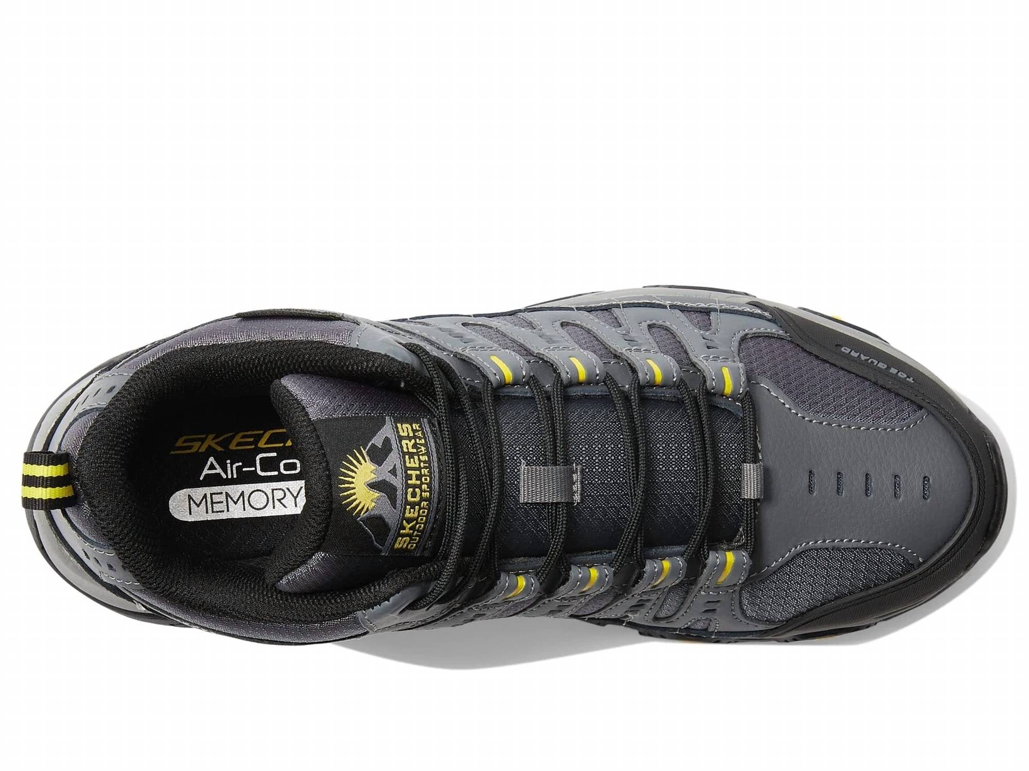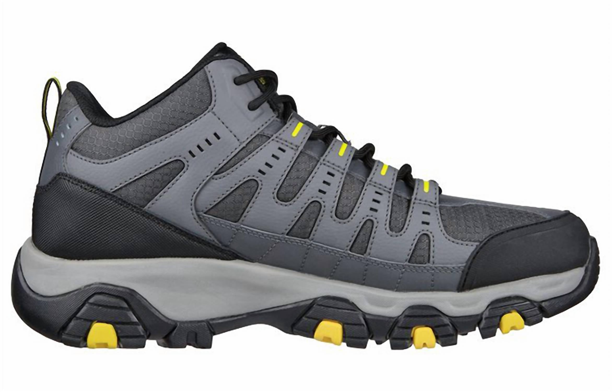 Step up your trail game with the Men's Terrabite Ravlin Sneakers by Skechers, crafted from a combination of leather, synthetic, and mesh to provide both style and durability in a sleek charcoal hue. This outdoor trail hiker features a mid-top design and a high-traction flexible outsole, perfect for adventure seekers. Experience unparalleled comfort with the Skechers Air-Cooled Memory Foam insole while enjoying resistance to water and stains, thanks to the 3M Scotchgard treatment. Highlighted by a 1.5-inch heel and the signature Skechers logo detail, these sneakers are a go-to for streetwear-savvy individuals.
