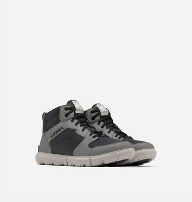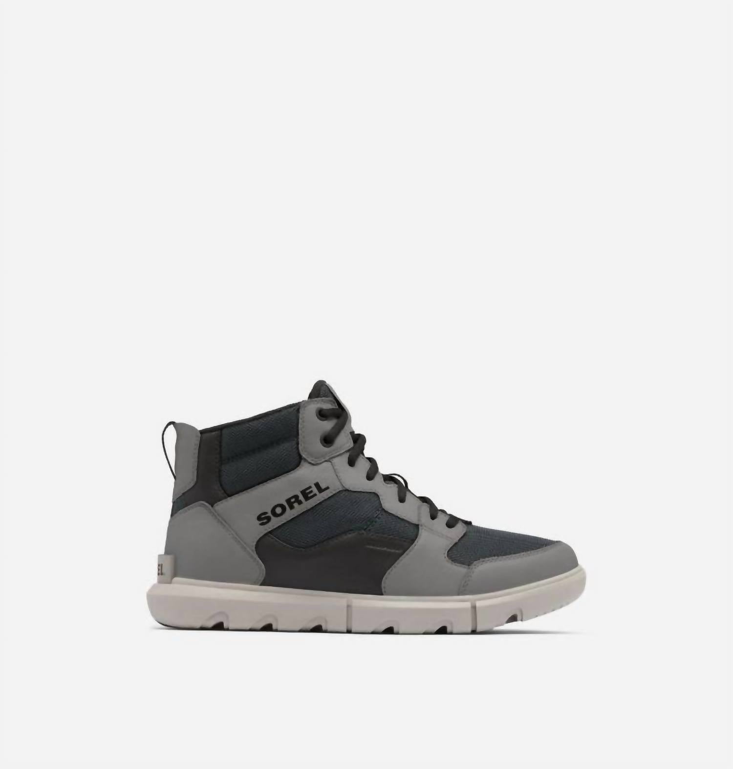 Step up your winter footwear game with the Men's Explorer Next Waterproof Sneaker by SOREL in Grill/Dove. These high-top sneakers feature a synthetic leather and textile upper with a fleece lining and 100g insulation to keep your feet warm and dry. Designed with a molded rubber sole for durability, they also include a removable molded EVA footbed for added comfort. With a 4 1/4-inch shaft height and 58-inch laces, this style is perfect for streetwear and back-to-school occasions. Imported.