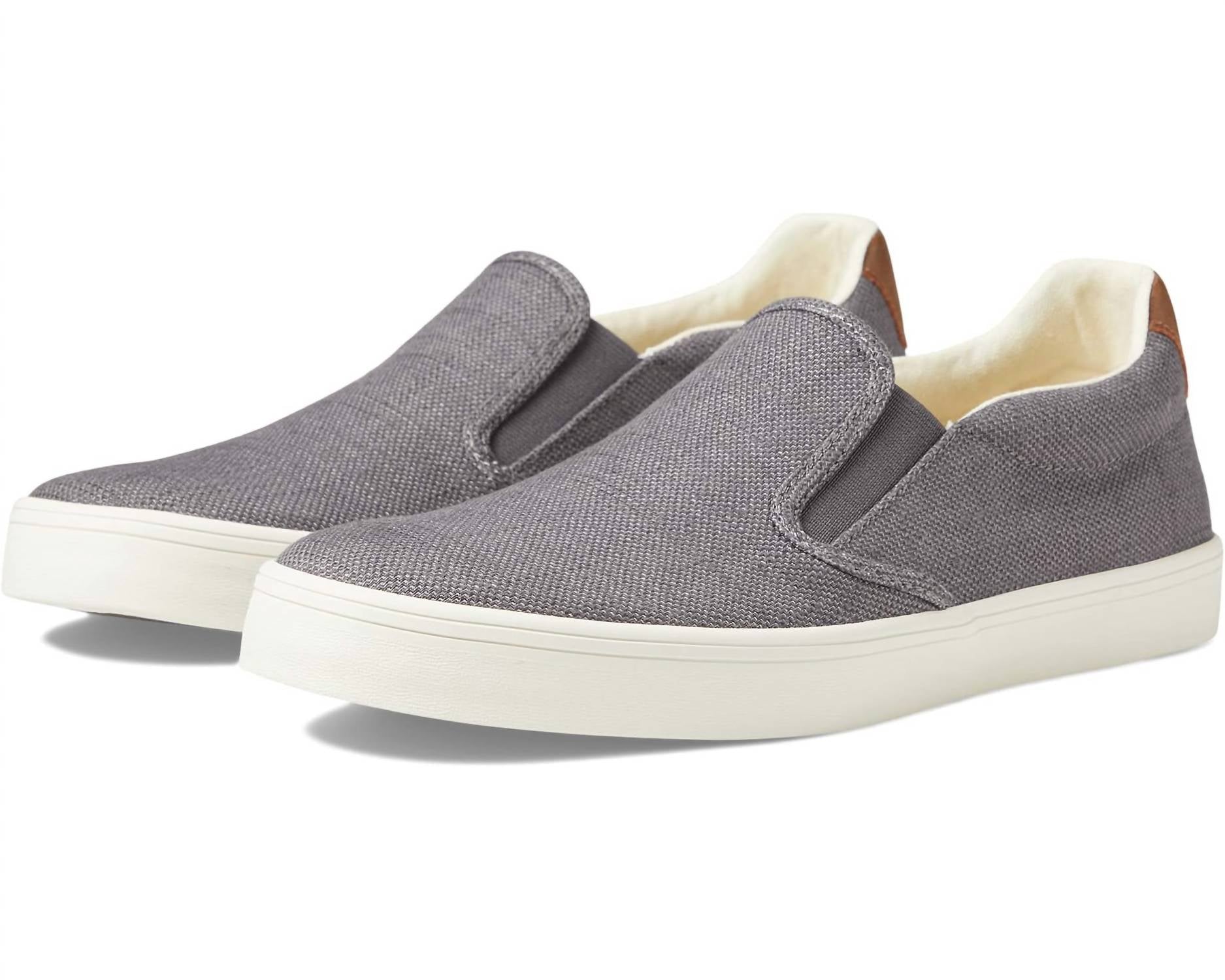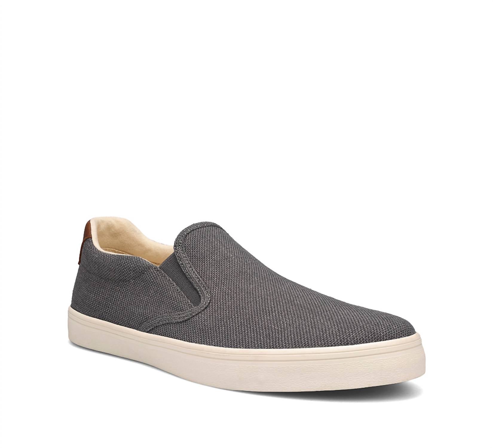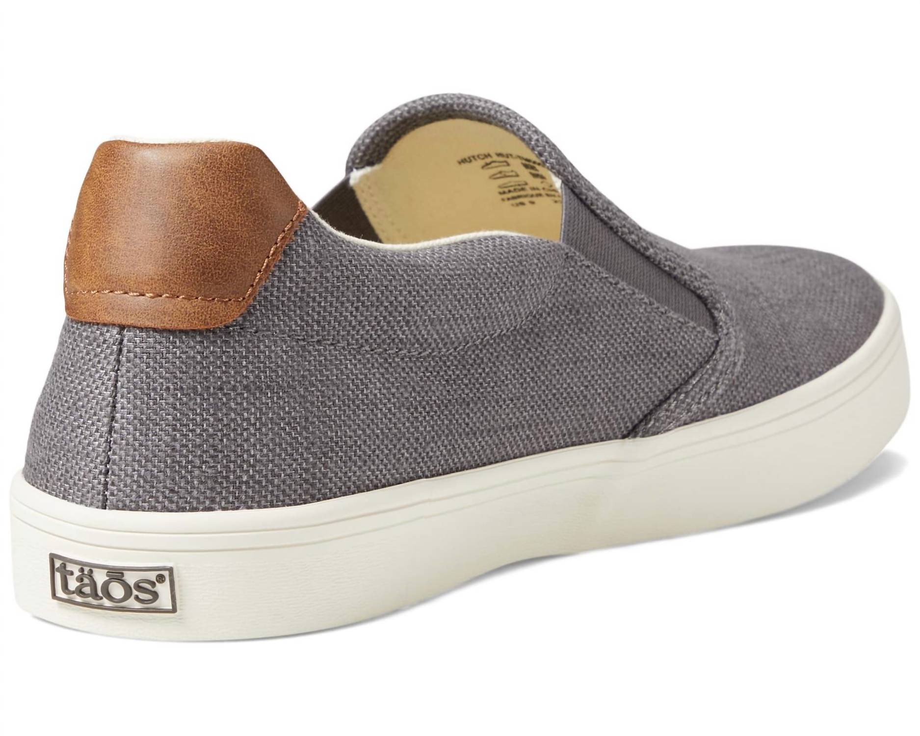 Introducing the Men's Hutch Canvas Sneaker by Taos, a stylish addition to any casual wardrobe. This grey sneaker features a slip-on style with a textile upper and lining, ensuring comfort all day long. Composition: Canvas. Toe Shape: Round toe, Heel: Flat (1" & Under). Weight: 14 oz. Origin: Imported.