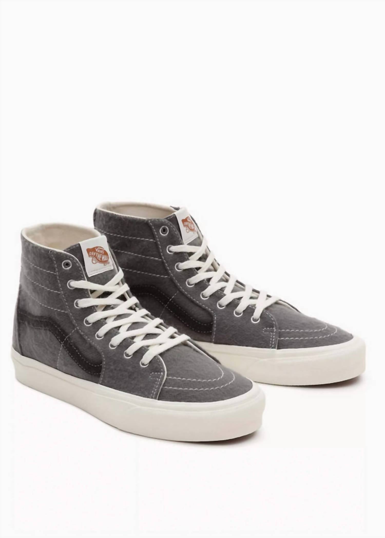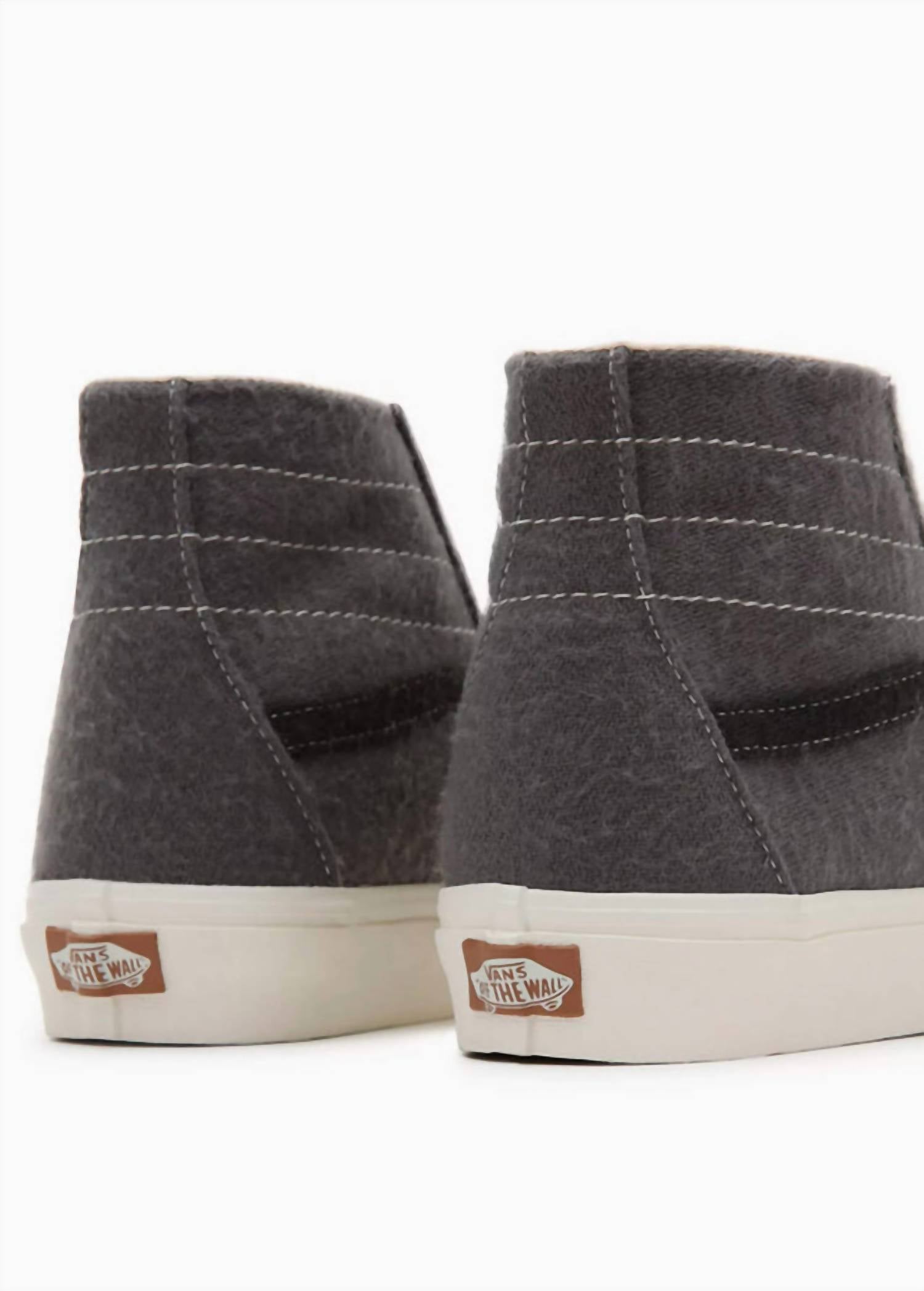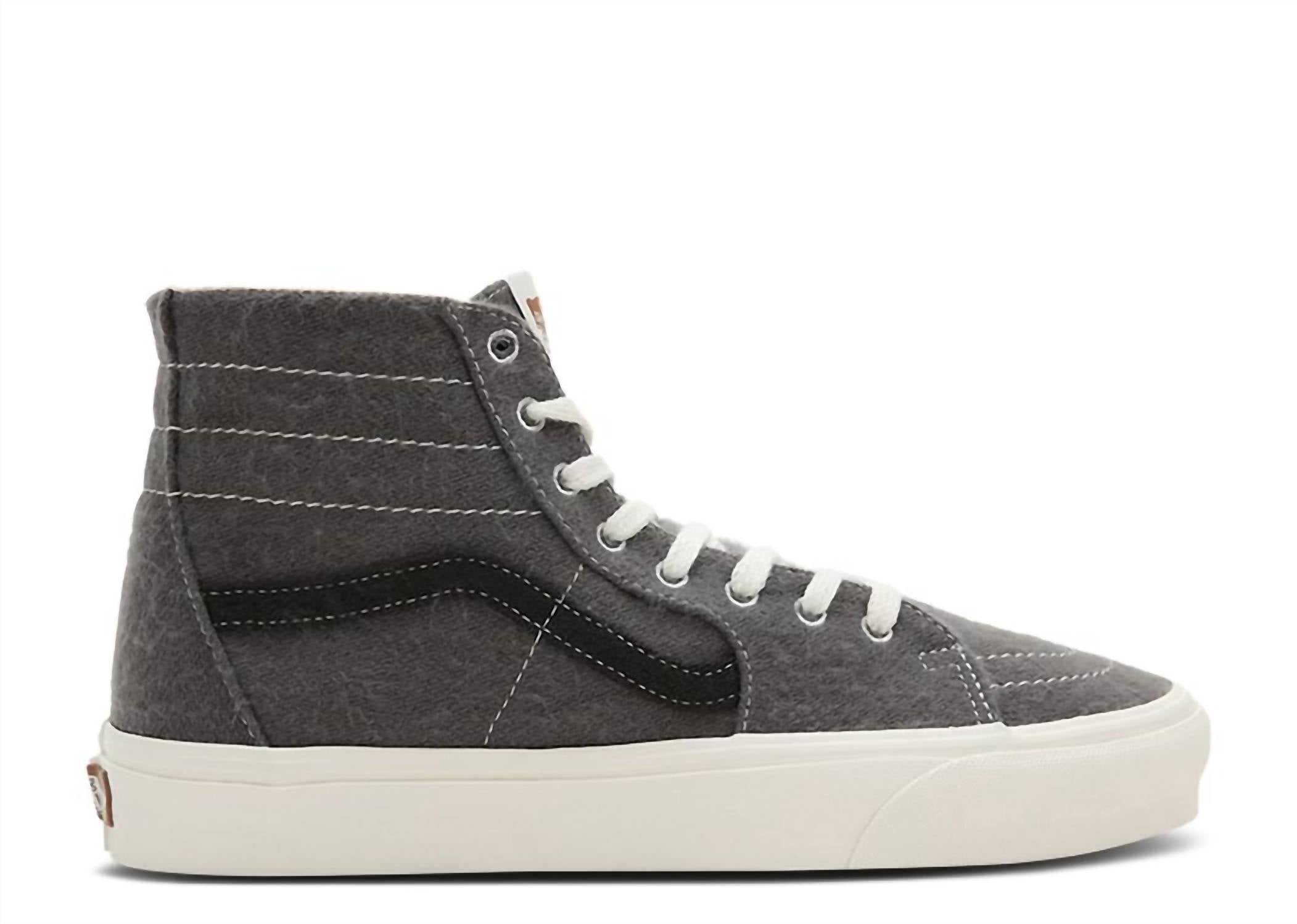 Experience the perfect blend of style and sustainability with the Men's Sk8-Hi Tapered Sneaker by Vans, crafted from eco-friendly wool in a light grey hue. Designed for adults, these sneakers feature a medium width and a low wedge heel, making them ideal for comfortable, all-day wear. Their round toe shape complements a streetwear trend, making them a versatile choice for summer, especially during back-to-school season. Embrace the iconic Vans style with this eco-conscious twist.