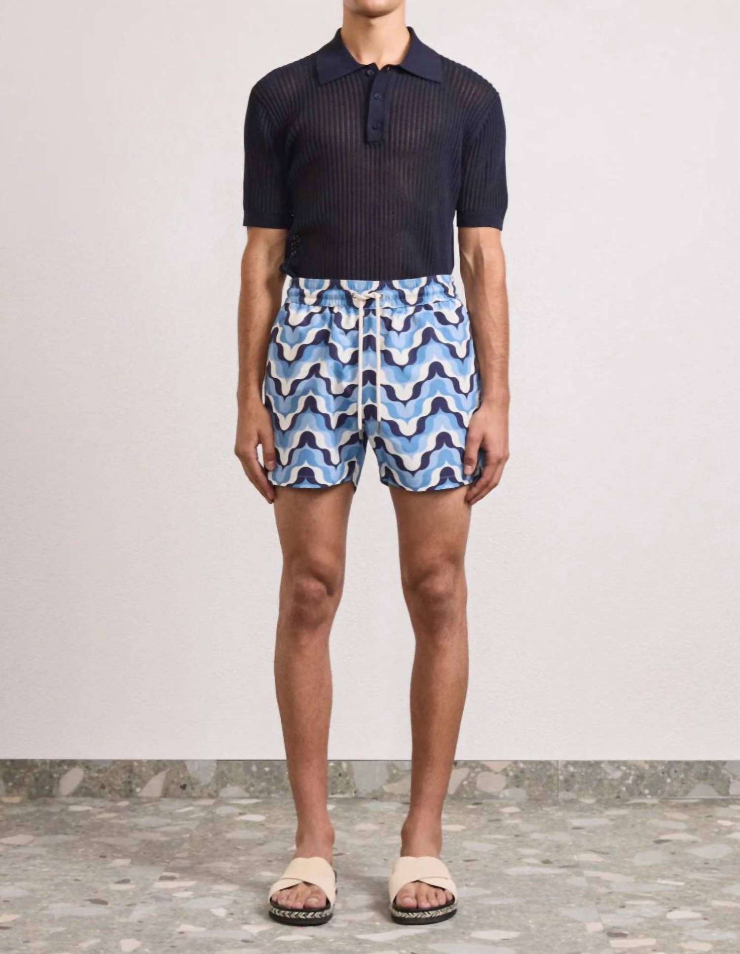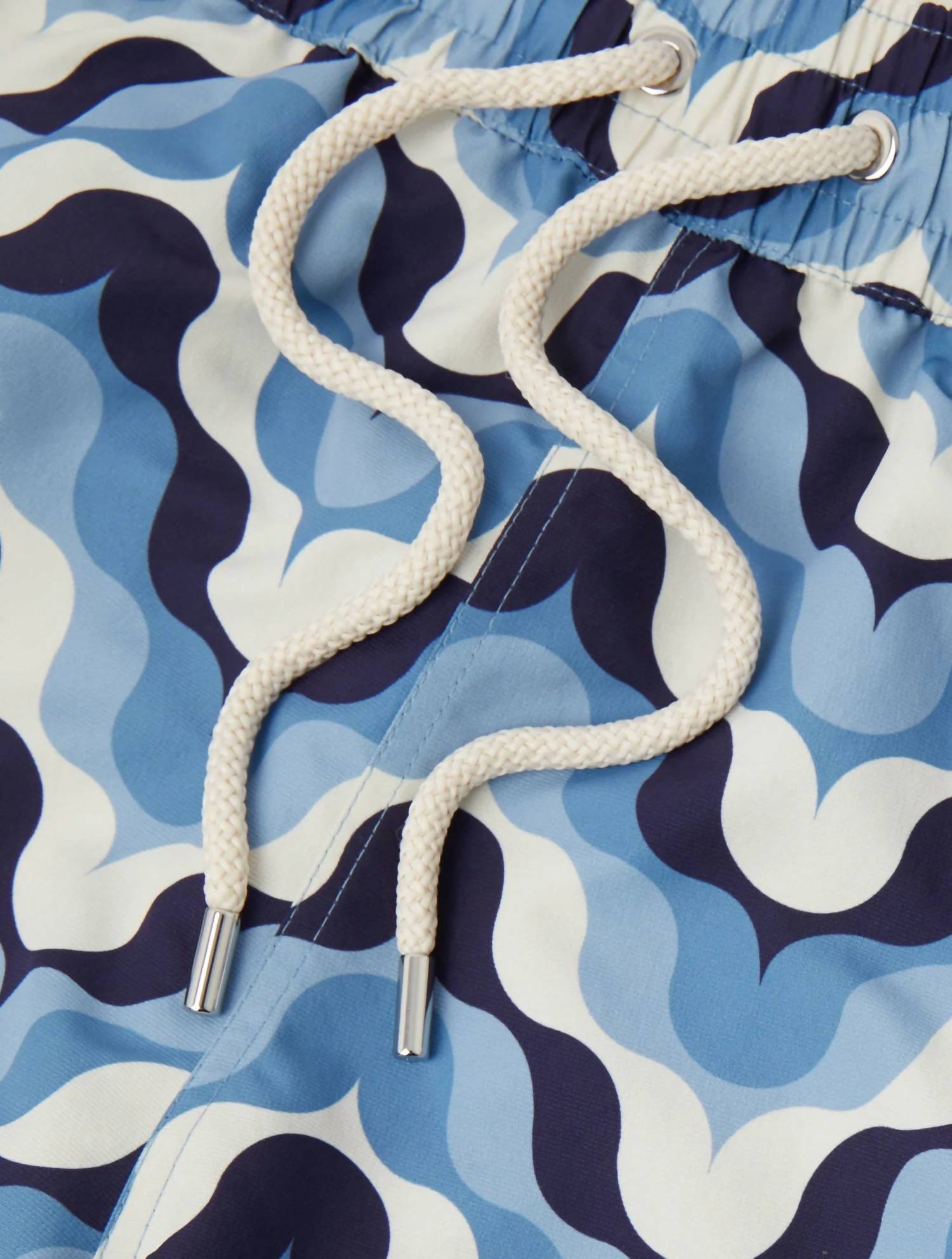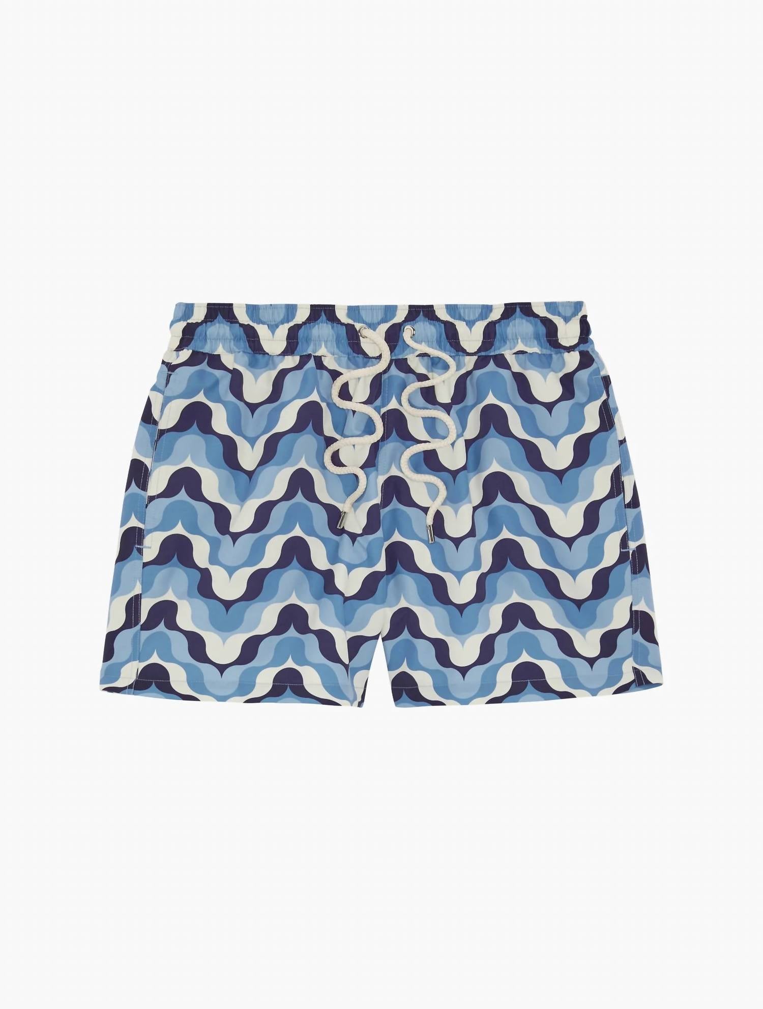 Dive into summer style with the Sport Deserto Print Swim Shorts by FRESCOBOL CARIOCA, featuring a striking patterned design in dusk and denim blue. These swim trunks, crafted from 100% recycled polyester, include a mid-rise drawstring waist with branded cord-ends for a secure fit. A back pocket with button closure adds functionality, while the mesh lining ensures comfort. Easily maintain their vibrant look with a machine wash.
