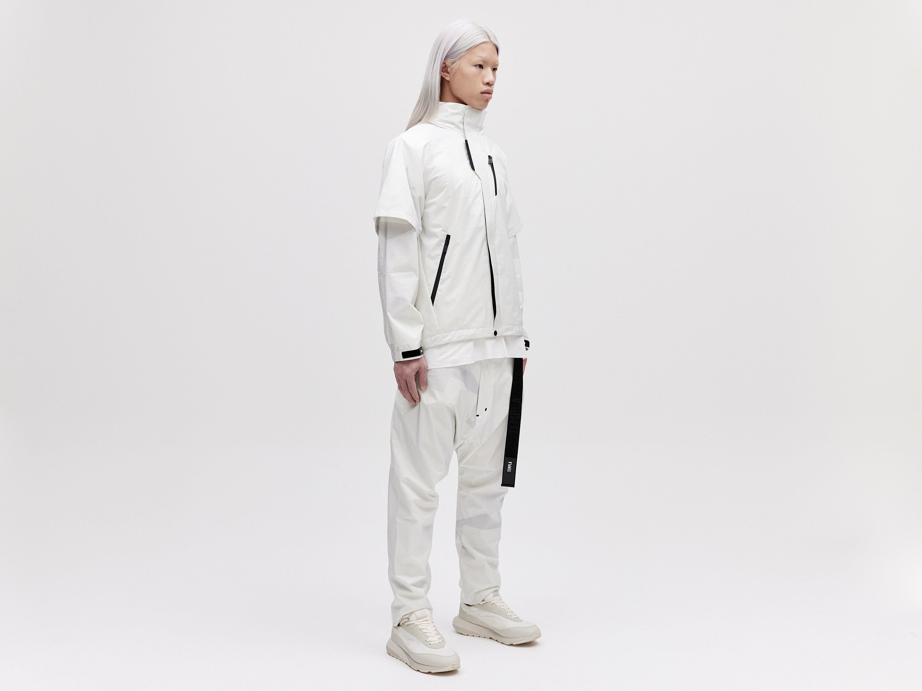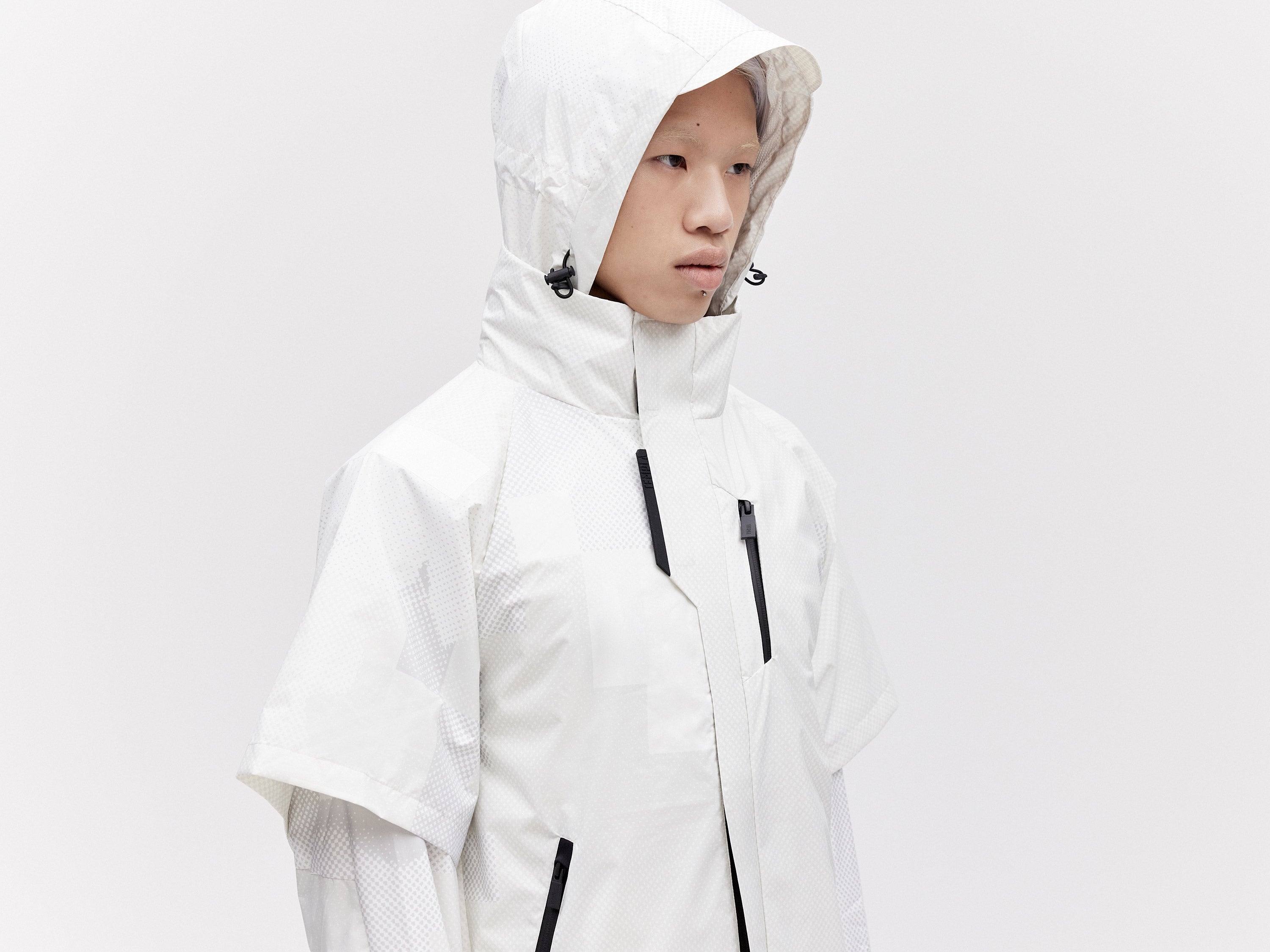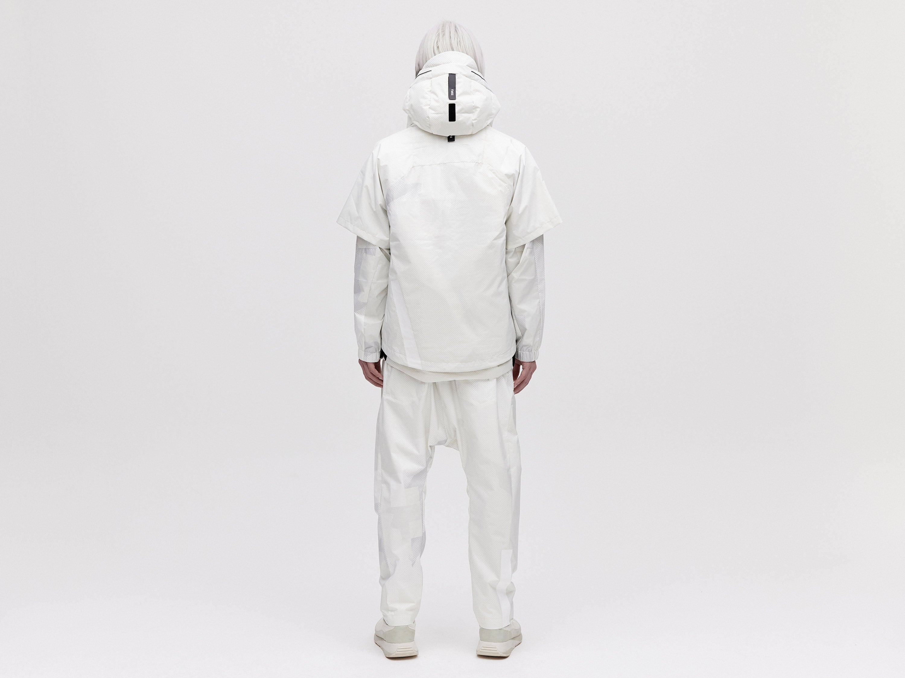 A lightweight all-weather shell jacket featuring a packable hood and ventilated armholes. Our Layered 2L Jacket is designed to fully integrate with our Modular Down Vest. Simply zip the jacket onto the hidden zips of the front placket of our Modula Down Vest for added warmth and protection against the elements.