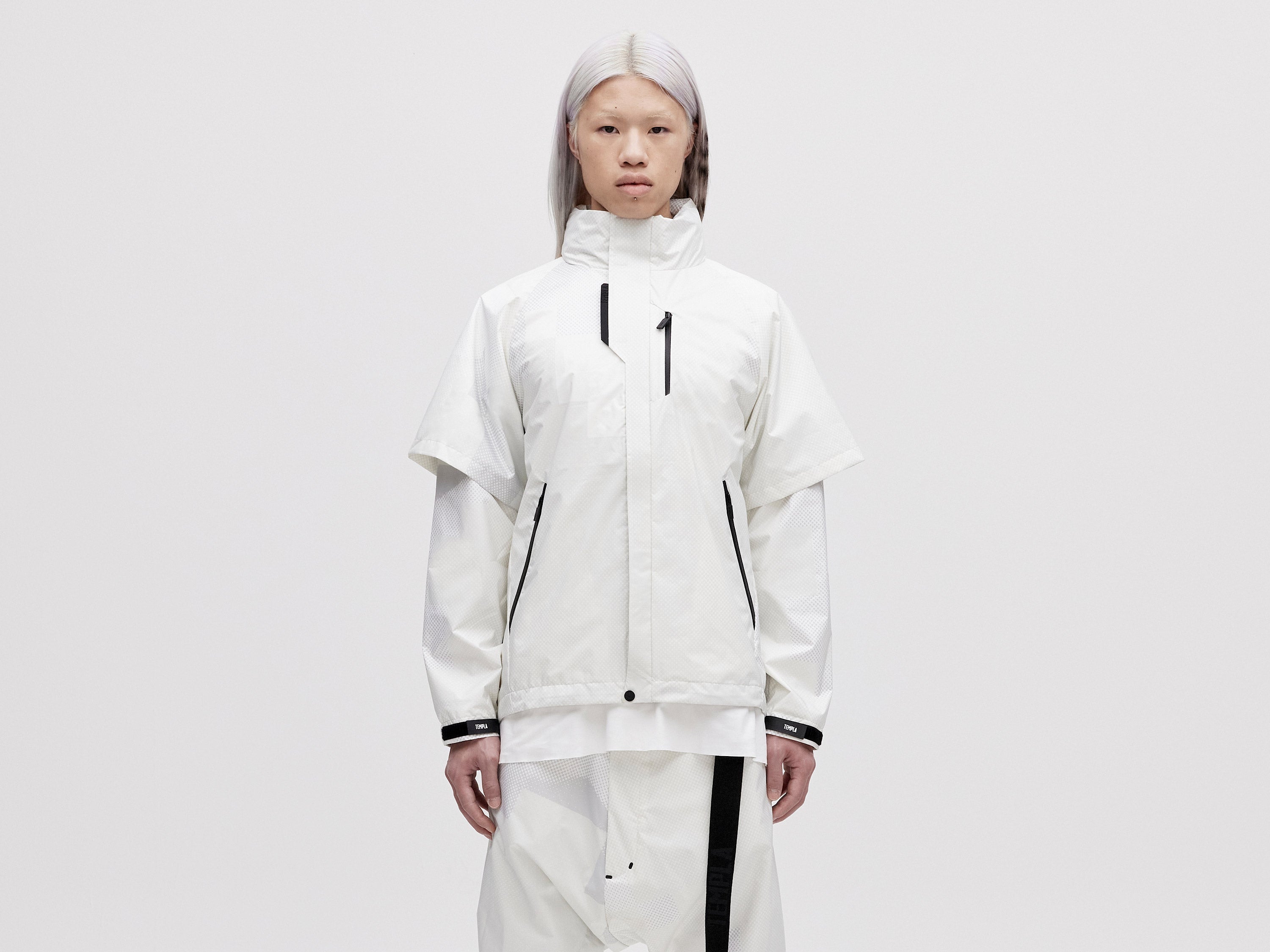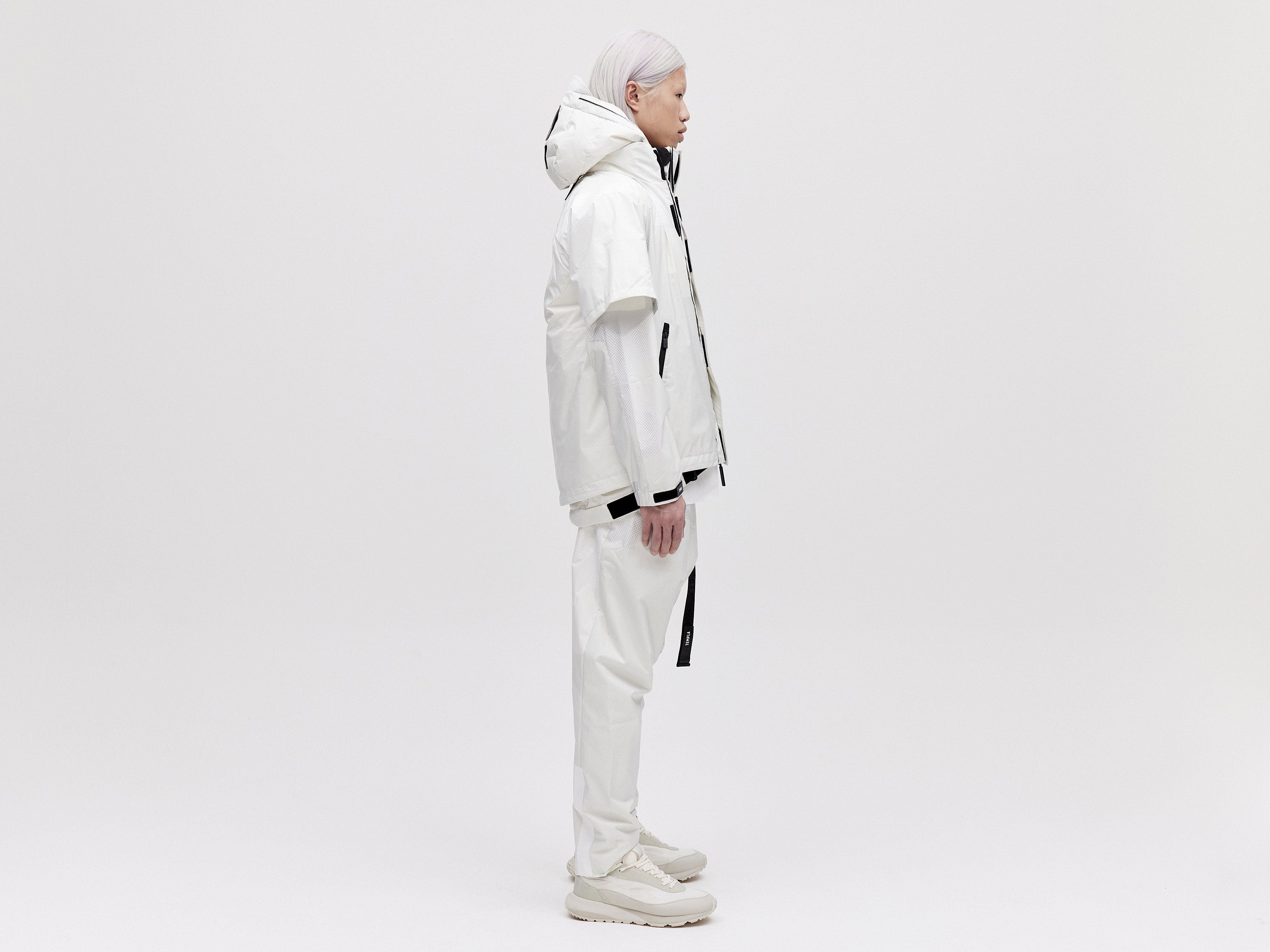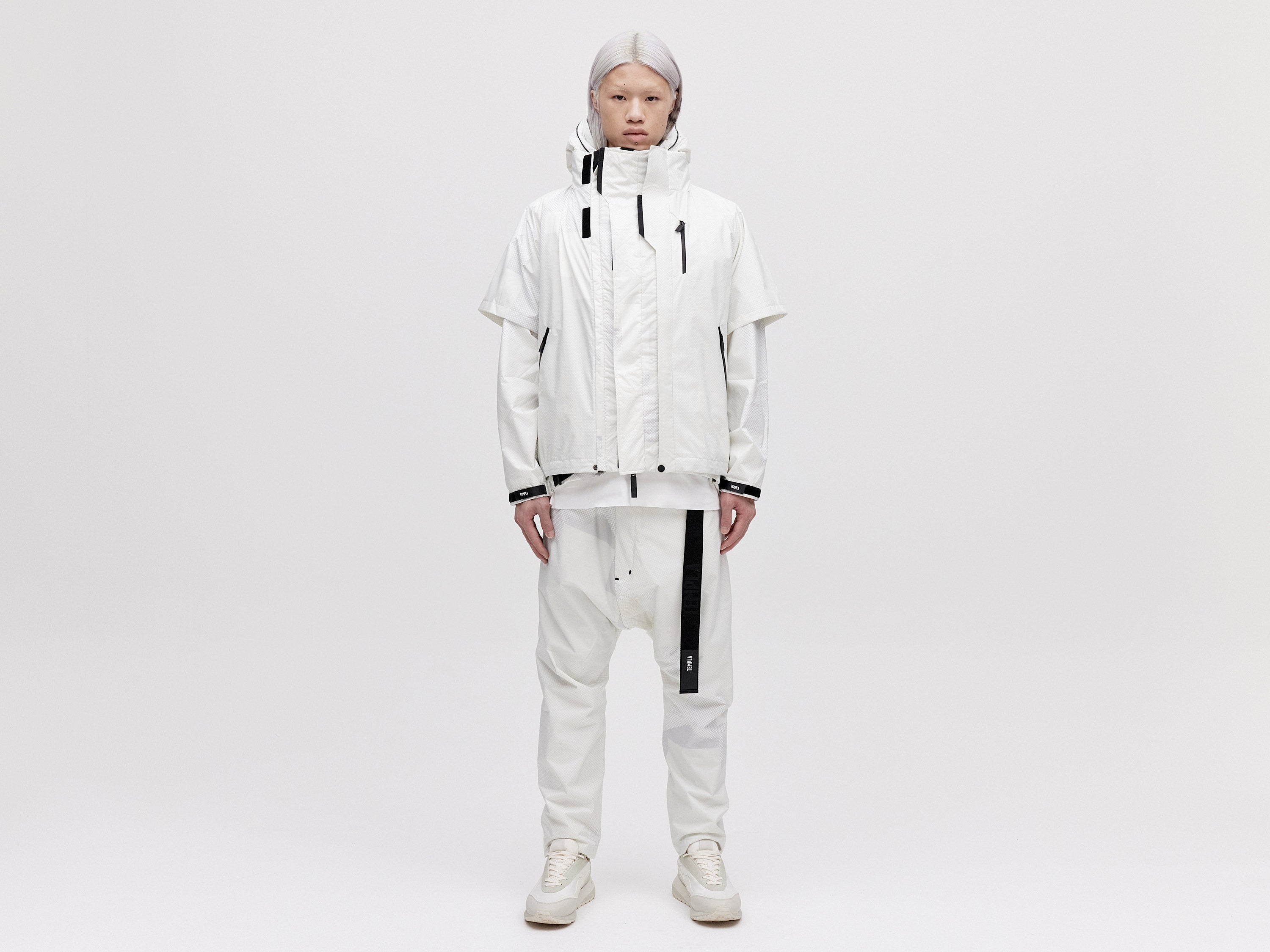 A lightweight all-weather shell jacket featuring a packable hood and ventilated armholes. Our Layered 2L Jacket is designed to fully integrate with our Modular Down Vest. Simply zip the jacket onto the hidden zips of the front placket of our Modula Down Vest for added warmth and protection against the elements.
