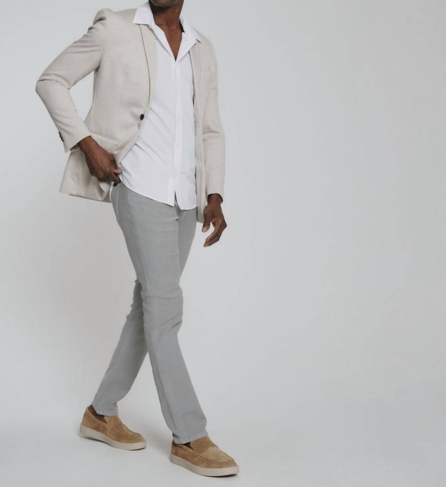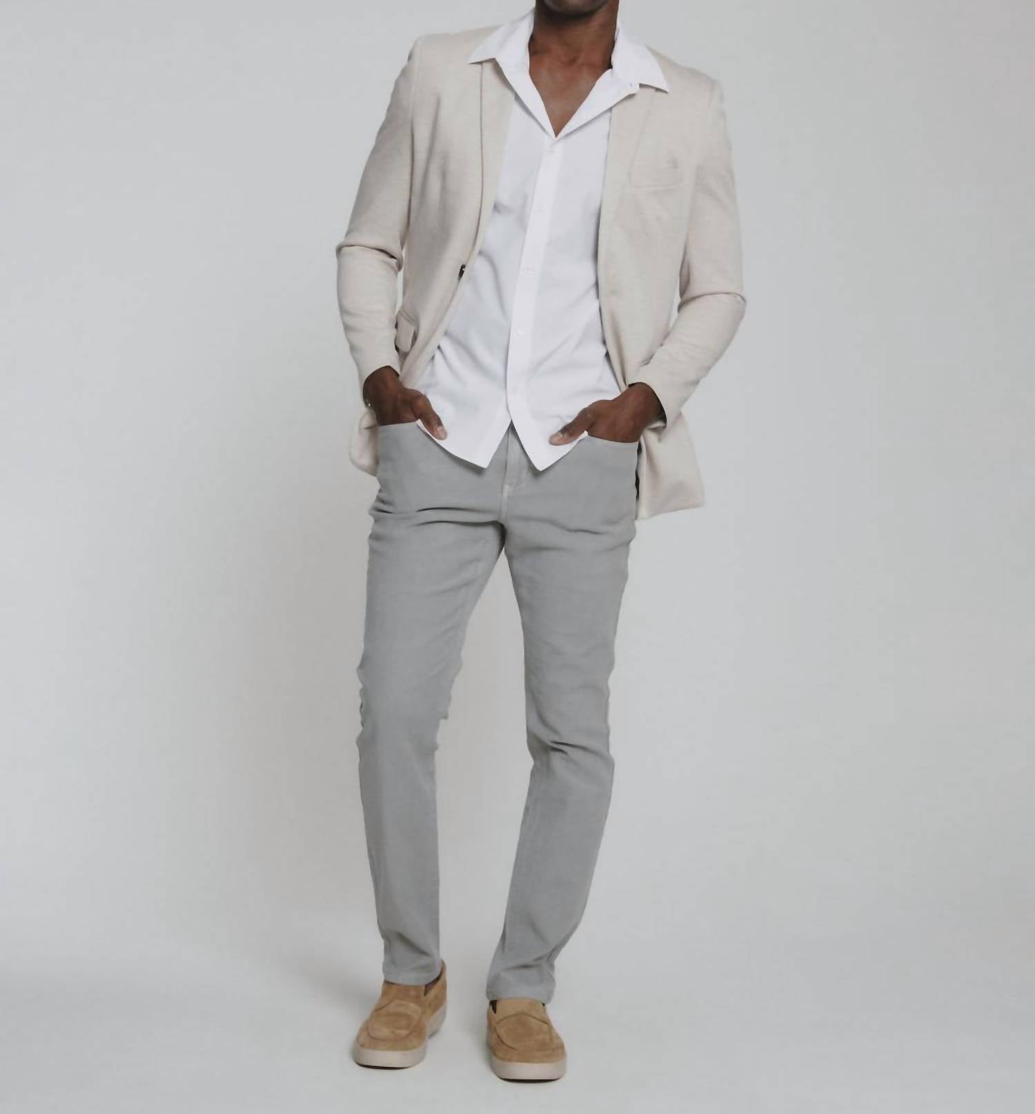 These pants feature a straight leg style with functional 5-pocket design and a zip closure, offering versatility and a polished look in a classic grey tone. Made with a unique 4-way stretch fabric that includes 78% cotton, 12% rayon, 8% lyocell, and 2% elastane, they provide optimal movement and a lived-in look thanks to pigment-dying and garment washing. Simply machine wash cold on a delicate cycle, tumble dry low, and iron on low if needed.