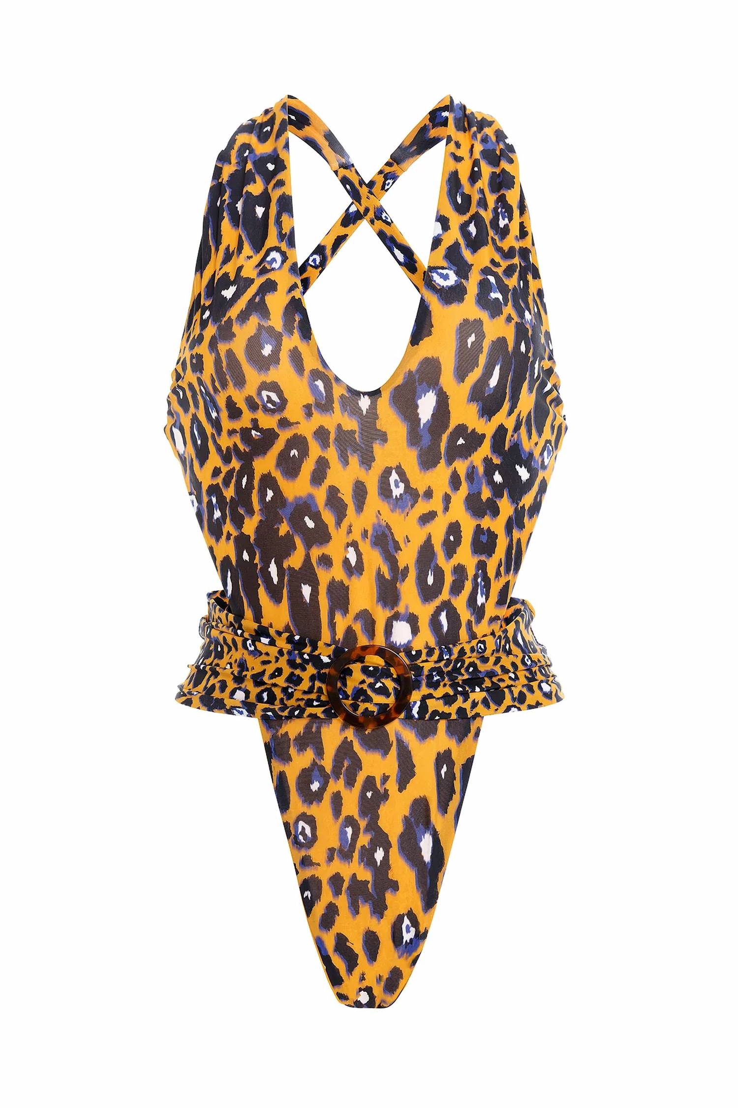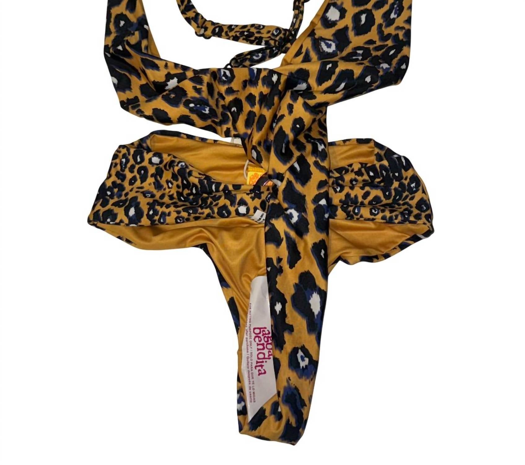 Dive into summer style with the Jadis Balam 9057 One-piece Swimsuit by AGUA BENDITA, featuring a stunning animal print in a flattering high-waist design. The swimsuit's open, crisscrossed back and deep V-neckline highlight its bold and timeless appeal, while the central acrylic ring detail adds a touch of glamour. Crafted from 80% polyamide and 20% spandex, with a lining of 86% poly and 14% spandex, this Colombian-made piece offers comfort and sophistication. Care for this swimsuit by hand washing and line drying for lasting wear.
