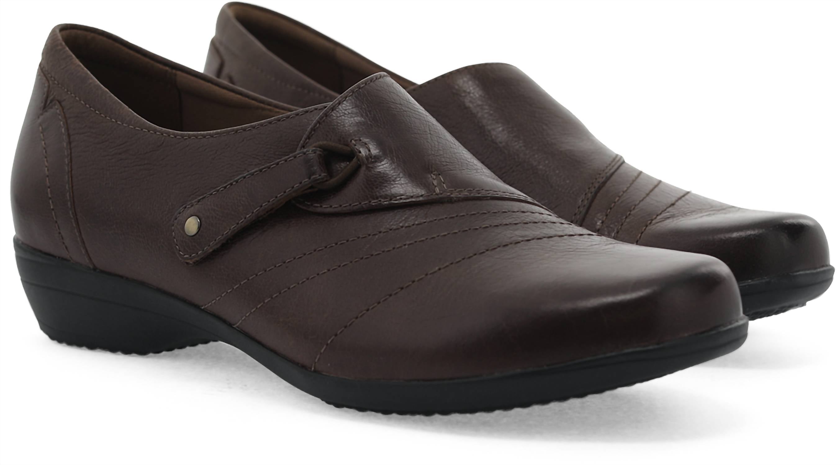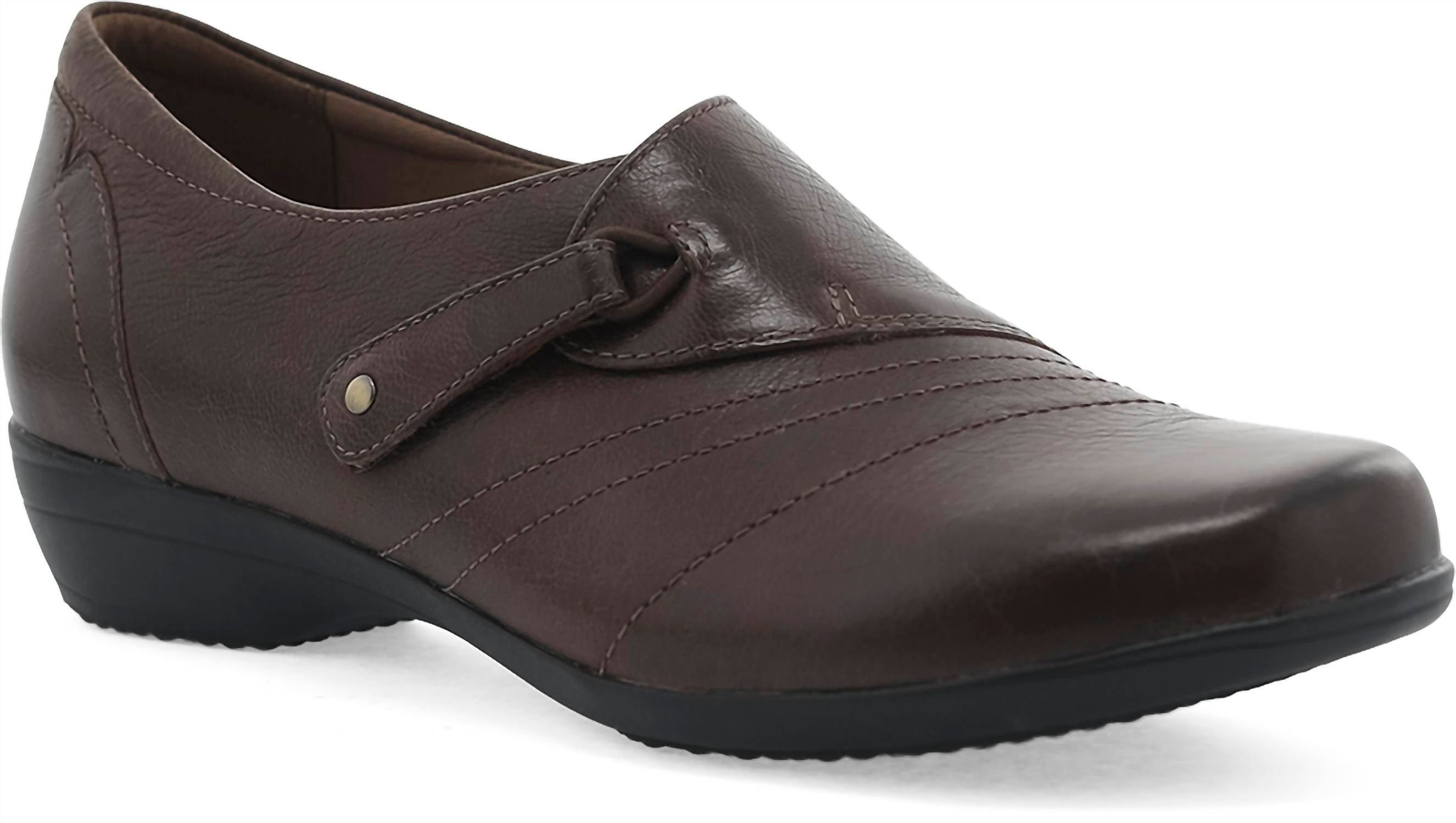 Step into comfort and style with the Women's Franny Burnished Moccasins by Dansko in elegant Chocolate. Designed with a round toe and flat heel, these moccasins are perfect for the summer season and back-to-school occasions. Elevate your wardrobe with this timeless footwear choice, crafted specifically for women. Made to deliver both comfort and durability, they embody Dansko’s commitment to quality.