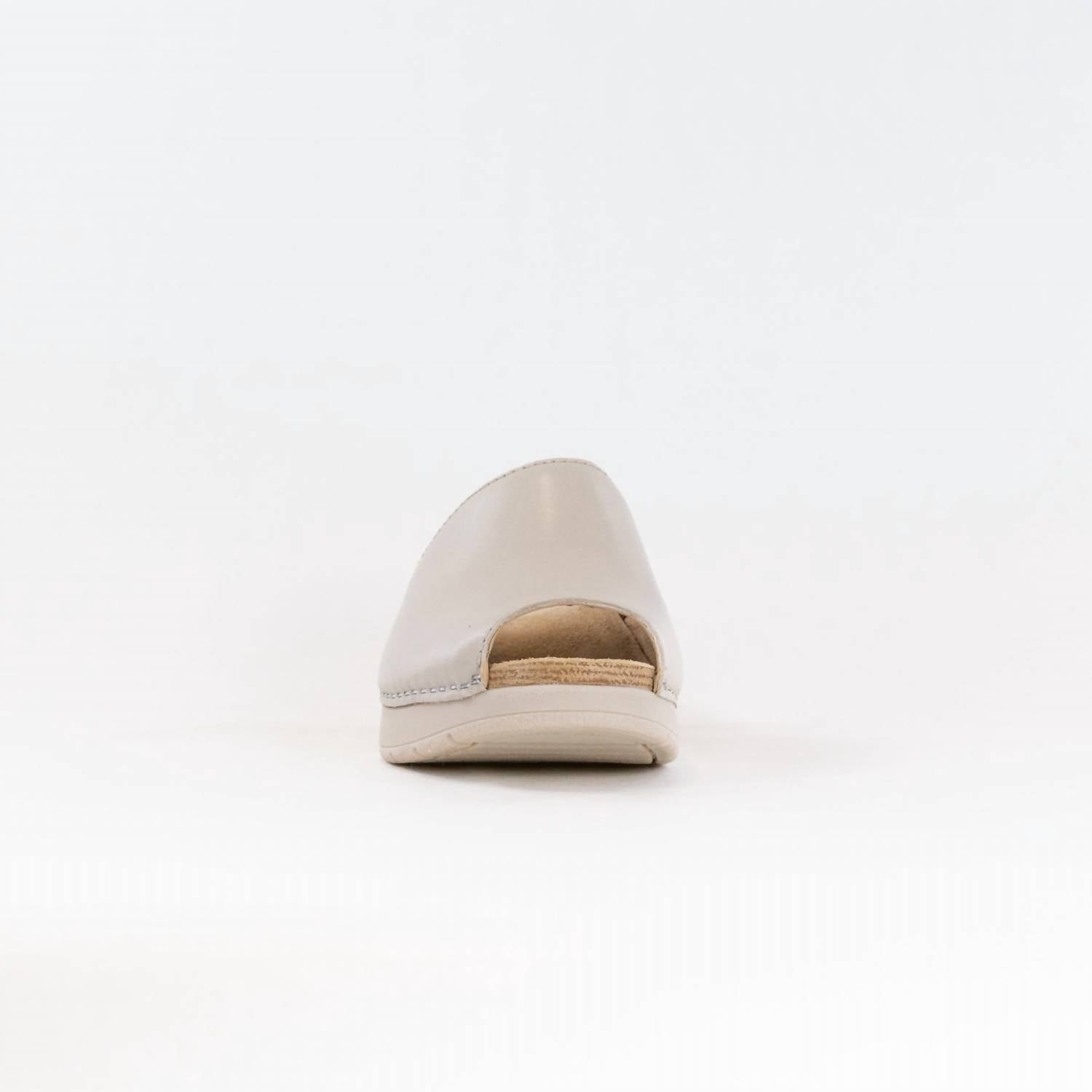Elevate your spring wardrobe with the Women's Ravyn Nappa Sandals by Dansko, designed in a minimalist ivory leather. These peep toe sandals feature a patented stapled construction and a flat heel for an effortless, comfortable fit. Enjoy a soft underfoot experience with the chrome-free suede socklining and cushioned energy-return PU footbed, supported by a lightweight BPU midsole and flexible TR rubber outsole. Perfect for dinner parties and Thanksgiving festivities, these sandals offer both style and comfort in every step.