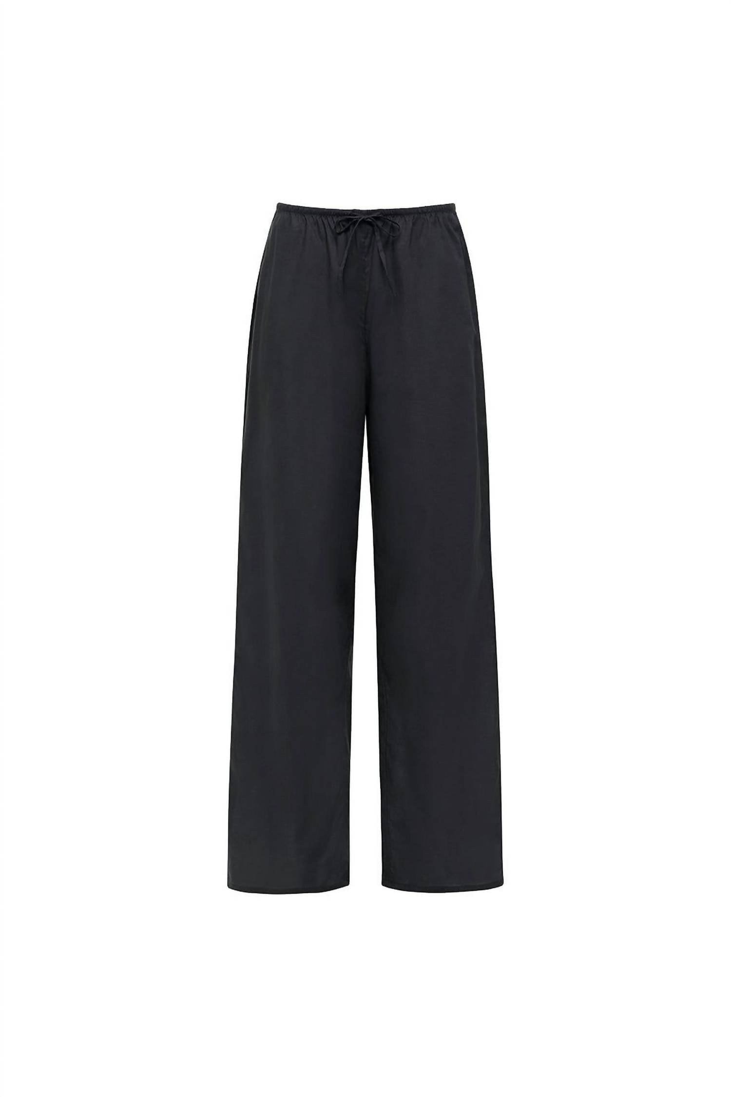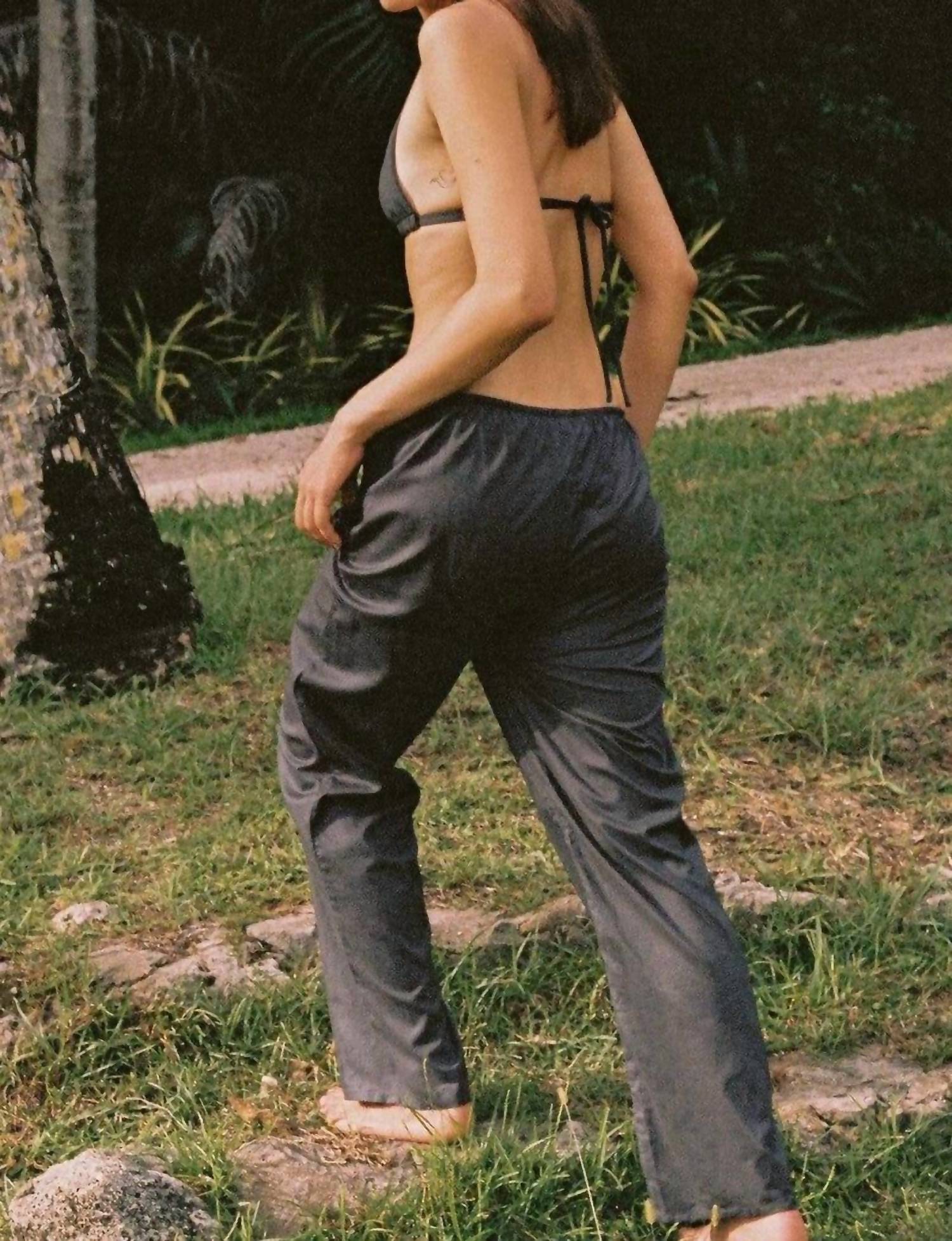 Introducing the Drawstring Wide Leg Pant by Montce, offering a versatile oversized fit for comfortable style. Made from 100% cotton, these pants feature a flared leg that can be worn mid or low rise. With an adjustable drawstring waist and pull-on closure, it ensures ease of wear. This solid charcoal piece includes pockets for added practicality and is machine washable for effortless care.
