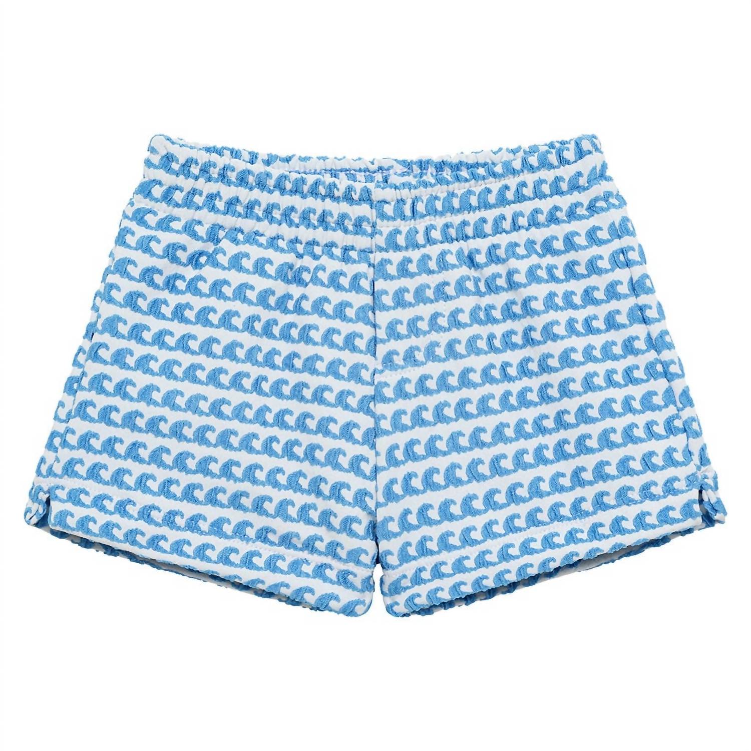 For the stylish young adventurer, Montce introduces the Kid's Mini Swim Trunk in the playful Wave Repeat pattern, exclusively designed for girls. Crafted from 100% recycled plastic bottles, this board short is part of the Boho Chic trend and perfect for summer vacations or Fourth of July celebrations. The fully lined swim trunk features a side vent detail and a cute accent pocket on the back. Care is simple, requiring only a gentle hand wash to maintain its charm.