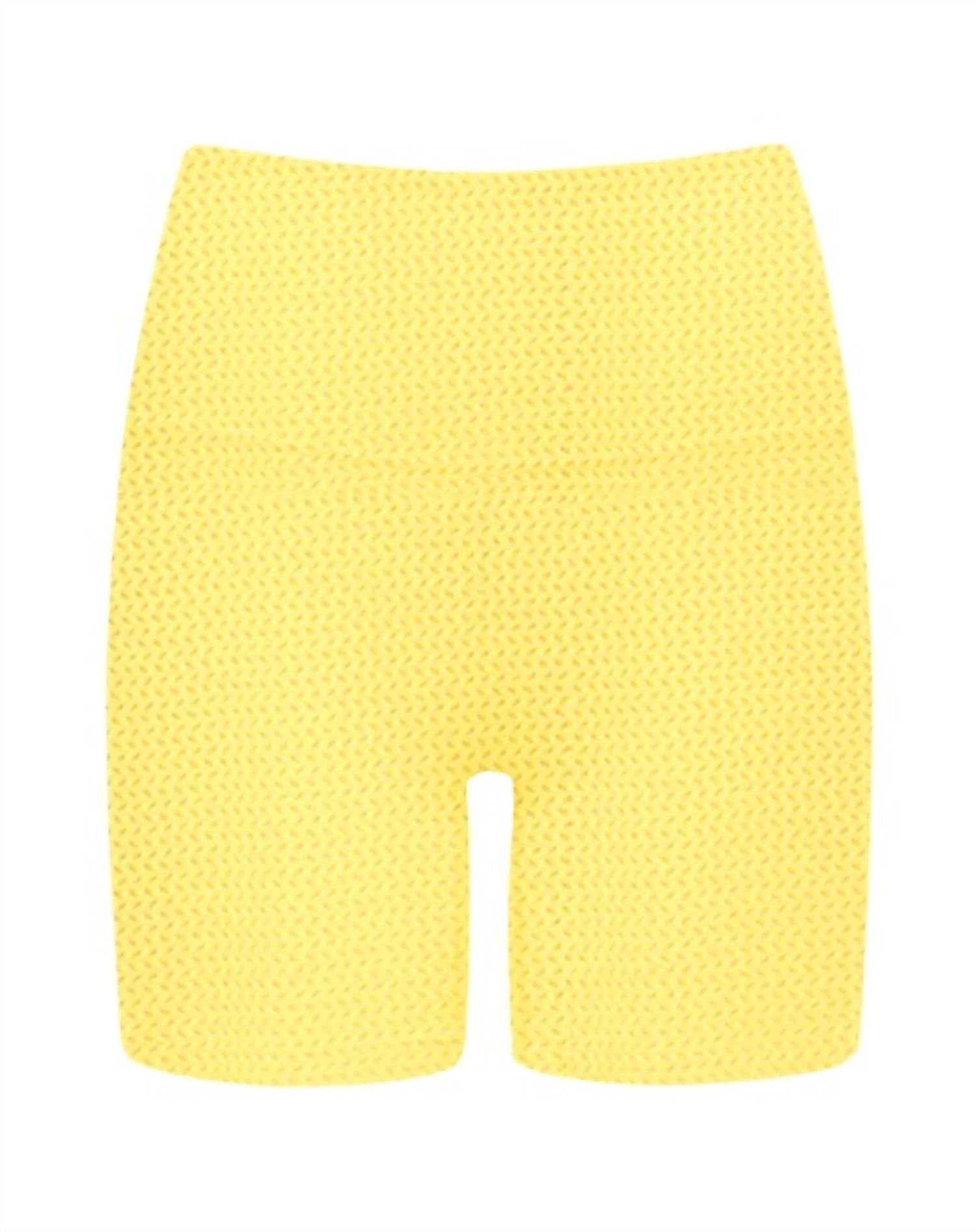 Experience the Women's Crochet Midi Bike Short by Montce, a chic addition to your athleisure wardrobe with its standout bright yellow hue. These high-rise bike shorts deliver light compression and a flattering fit with an approx. 5" inseam and wide, contouring waistband. The nylon/spandex blend provides comfort and extra stretch, crafted from fabric imported from France. Featuring pull-on closure and flat-locked seams, these shorts are perfect for lounging, light exercise, or even as vibrant swim bottoms. Care: Machine wash.