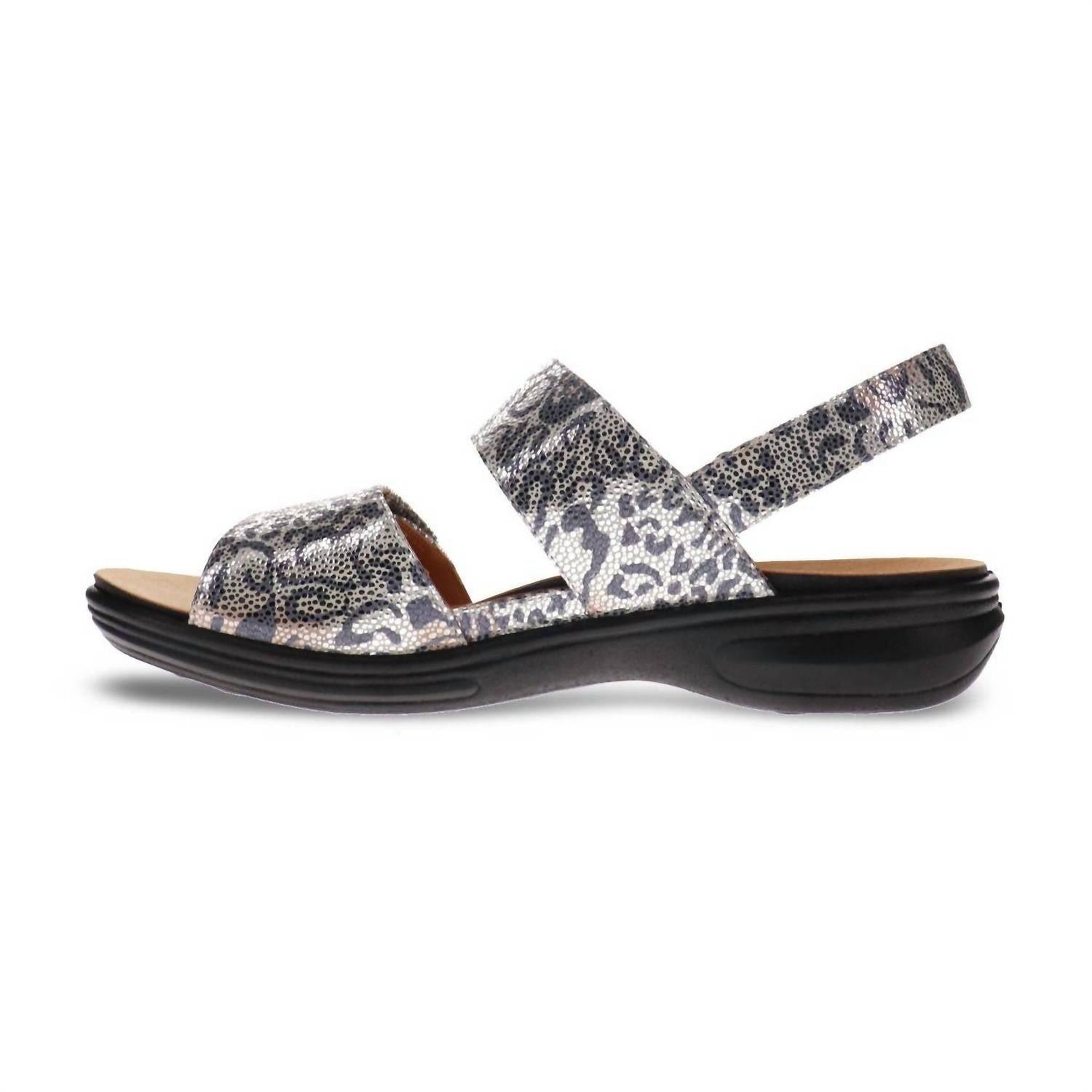 Introducing the Women's Como Sandal by Revere, a perfect blend of color and texture for a cool and refined look. Designed for summer dinner parties, these sandals feature an open toe and flat heel, offering both style and comfort. The minimalist Silver Safari color scheme easily complements any outfit, while three subtle points of adjustability ensure a perfect fit. Ideal for the modern woman, these sandals are a wardrobe must-have.