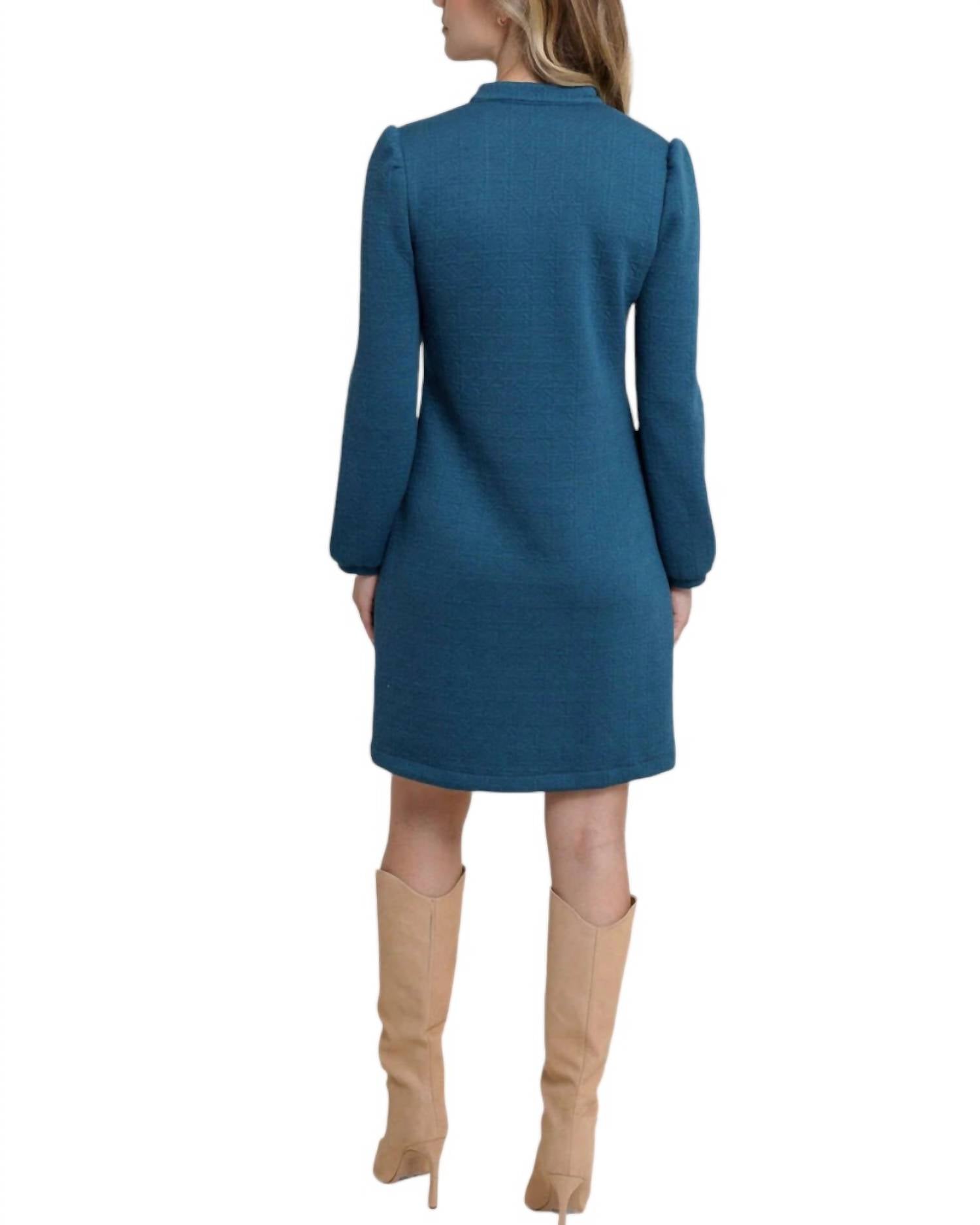 The kind of easy and flattering dress you'll be reaching for all season long.Introducing the Oren Quilted Dress, where style meets comfort for any occasion. This relaxed fit, teal haze dress boasts a long sleeve design with elastic cuffs and an all-over quilted pattern. With a composition of 53% Polyester and 47% Cotton, this pull-on style kaftan silhouette dress perfectly combines ease and elegance. Finished with a 37" length and a chic split V-neckline, it’s the ideal addition to your wardrobe for effortless sophistication.