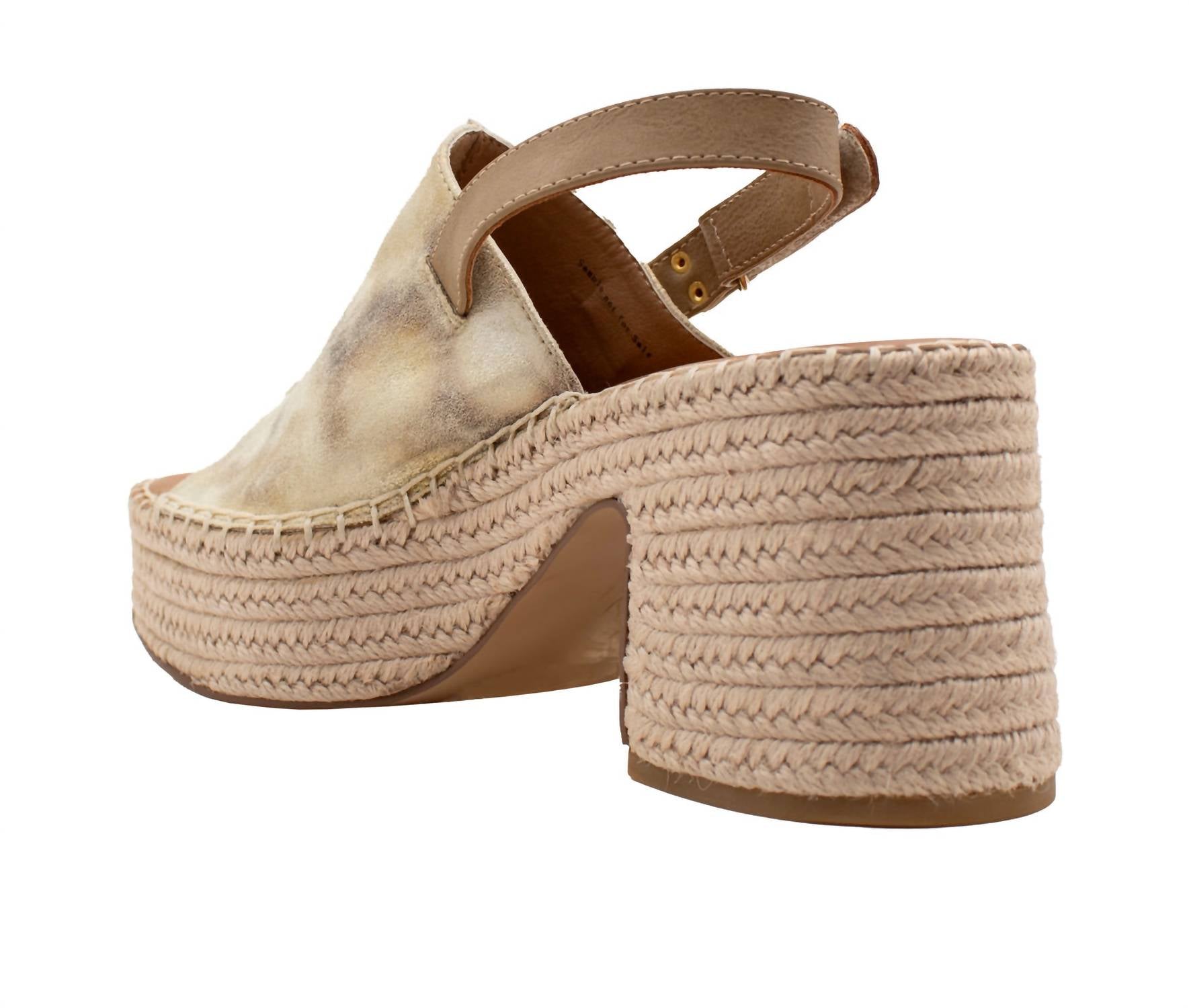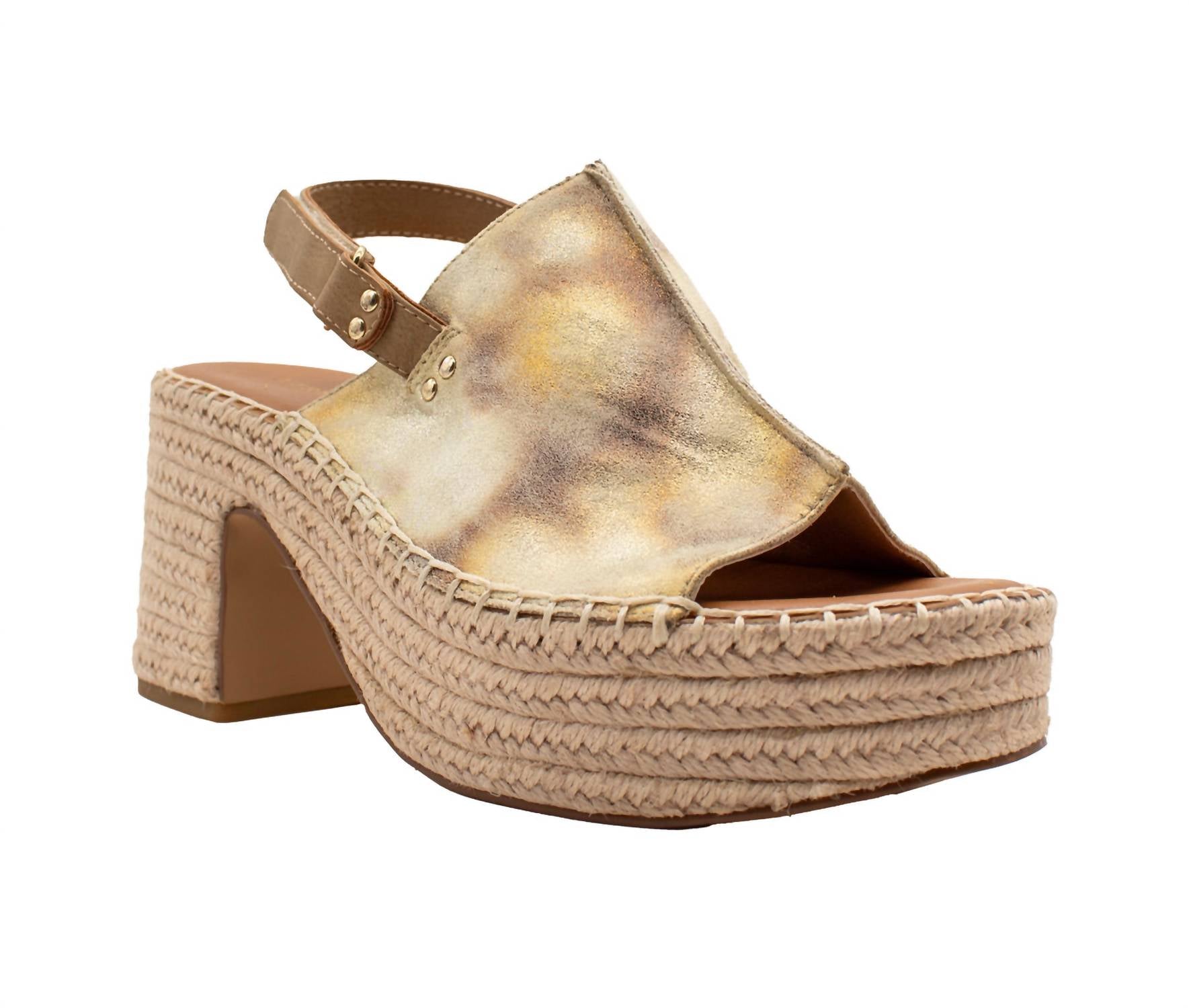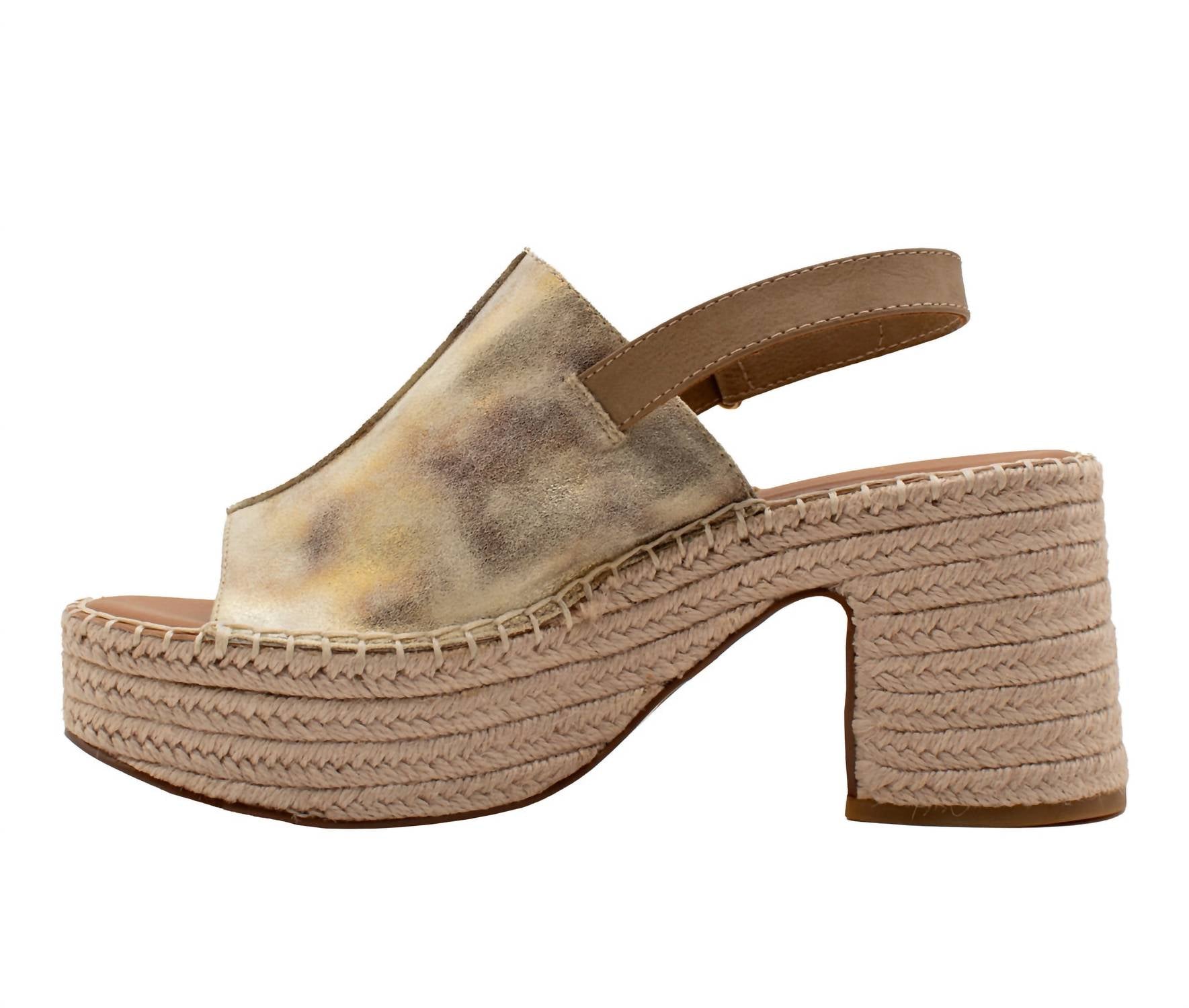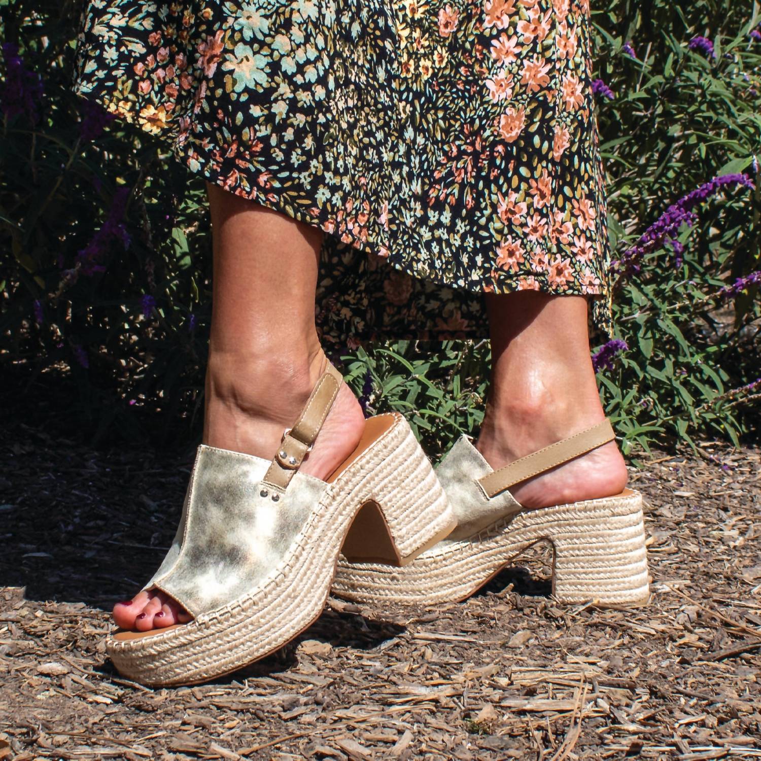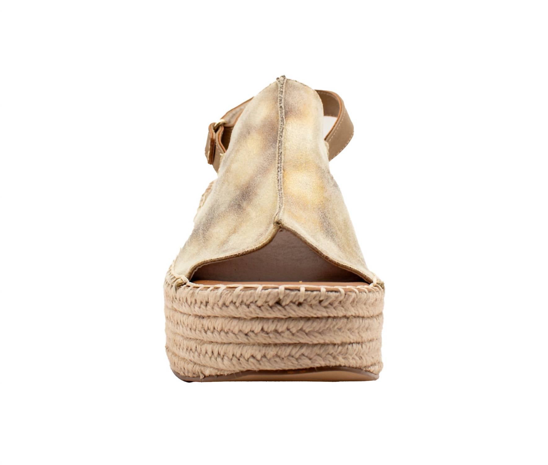 Very Volatile brings you the Women's Taos Sandal in a stunning gold, perfect for your summer vacation looks. Designed with an open toe and a trendy block heel, this sandal features a luxurious 3.25" jute espadrille bottom and a 1.5" platform for added height. The faux leather upper and synthetic lining ensure comfort, while a padded insole provides support for all-day wear. Embrace the boho chic trend with these stylish sandals, ideal for sun-soaked adventures.