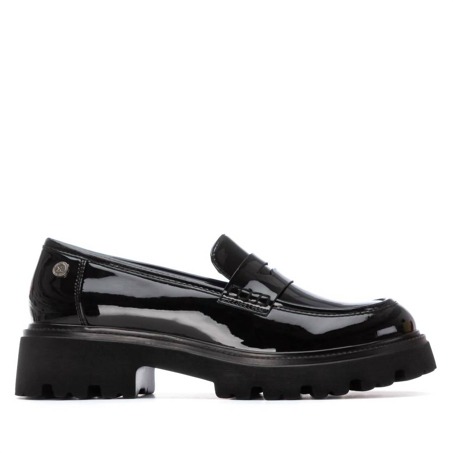 Experience the perfect blend of style and comfort with Xti Women's Moccasins in classic black. Crafted from high-quality leather, these shoes feature a chunky heel that measures 3 inches, ideal for spring holiday parties. The round toe design and medium width provide a comfortable fit for all-day wear. Elevate your wardrobe with these expertly crafted shoes designed for the modern woman.