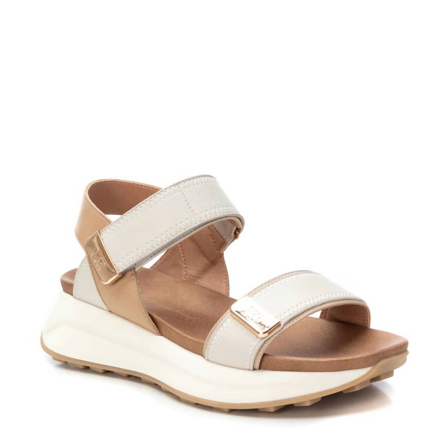 Flowy dresses, cropped pants, and even jumpsuits... this sandal works with them all! Step into effortless elegance with the Xti Women's Low Wedge Sandals, crafted in versatile beige faux leather. These sandals feature a chic round toe and a comfortable low wedge heel, ranging from 1 1/4" to 2", ideal for adding a subtle lift to your look. Designed with the modern woman in mind, these shoes perfectly balance comfort and style, making them a go-to choice for any occasion. Whether you're dressing up for work or planning a casual outing, these sandals are your perfect companion.