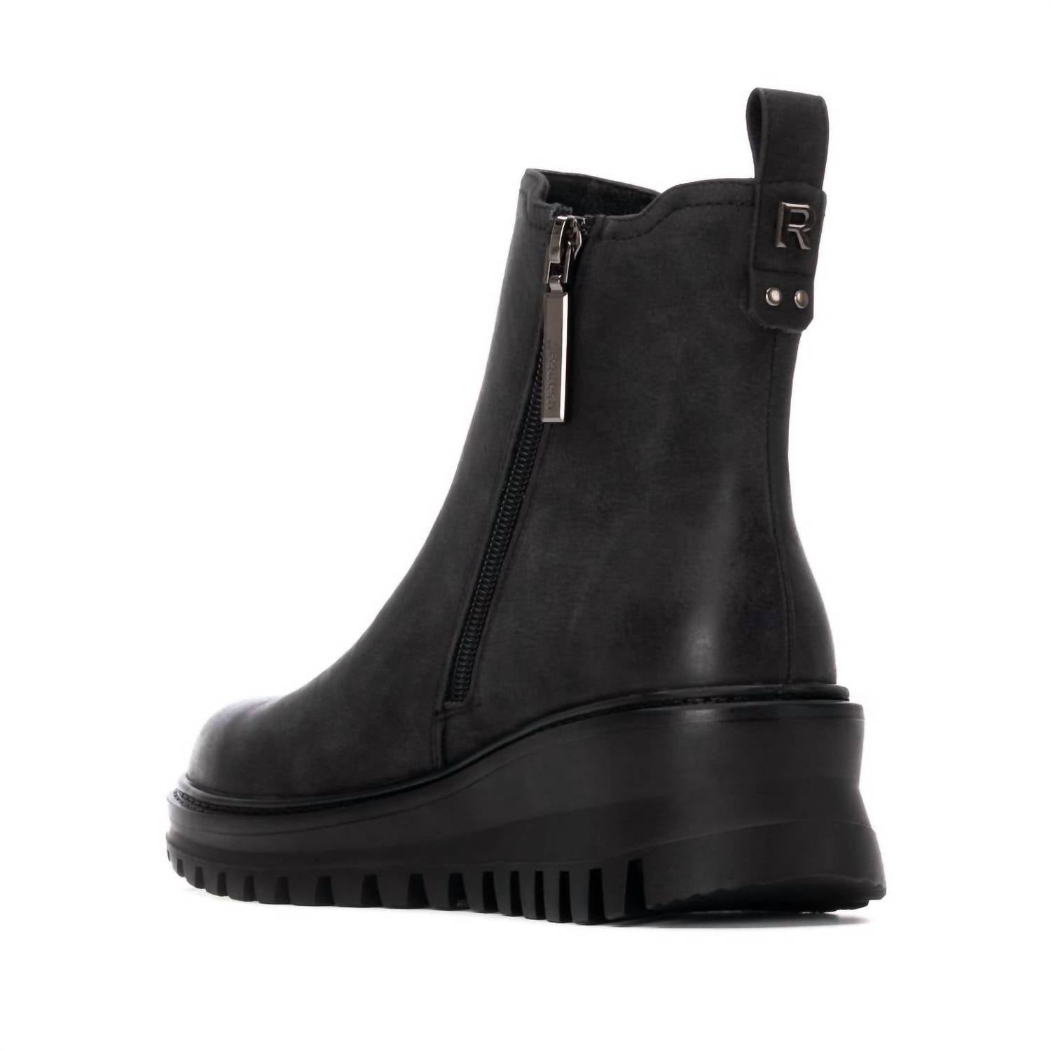 Embrace chic style with the Women's Refresh Ankle Wedge Booties by Xti, crafted from synthetic material that beautifully mimics leather. These black wedge ankle boots feature a convenient side zip fastening and a practical pull tab for easy wear. They are designed with a non-slip rubber sole and a removable insole for exceptional comfort and hygiene. Certified vegan by PETA and boasting a low heel height of 1 1/4"-2", these boots offer a blend of fashion and function perfect for any dinner party or New Year's Eve celebration.