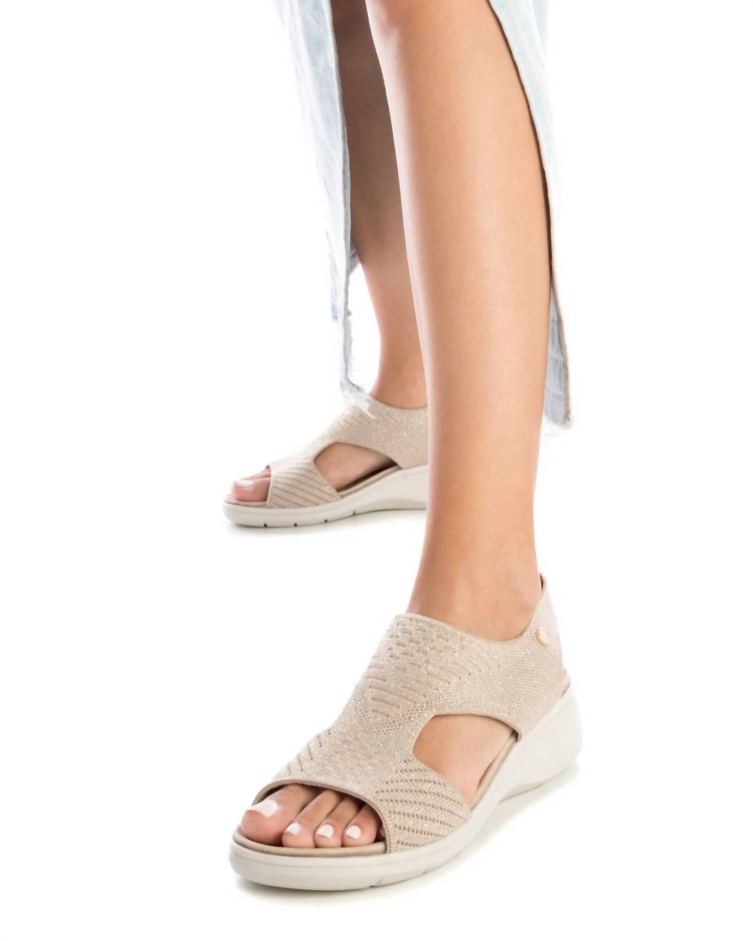 Upgrade your footwear collection with the Women's Wedge Sandals by Xti, designed for both style and comfort. Crafted from high quality, elastic beige textile, these sandals feature a padded comfort insole and a sturdy non-slip rubber sole, perfect for all-day wear. With a chic wedge heel approximately 0.5 inches high, they offer subtle elevation and support, making them ideal for any casual outing. Proudly vegan-certified by PETA, these trendy sandals are your guilt-free fashion choice.