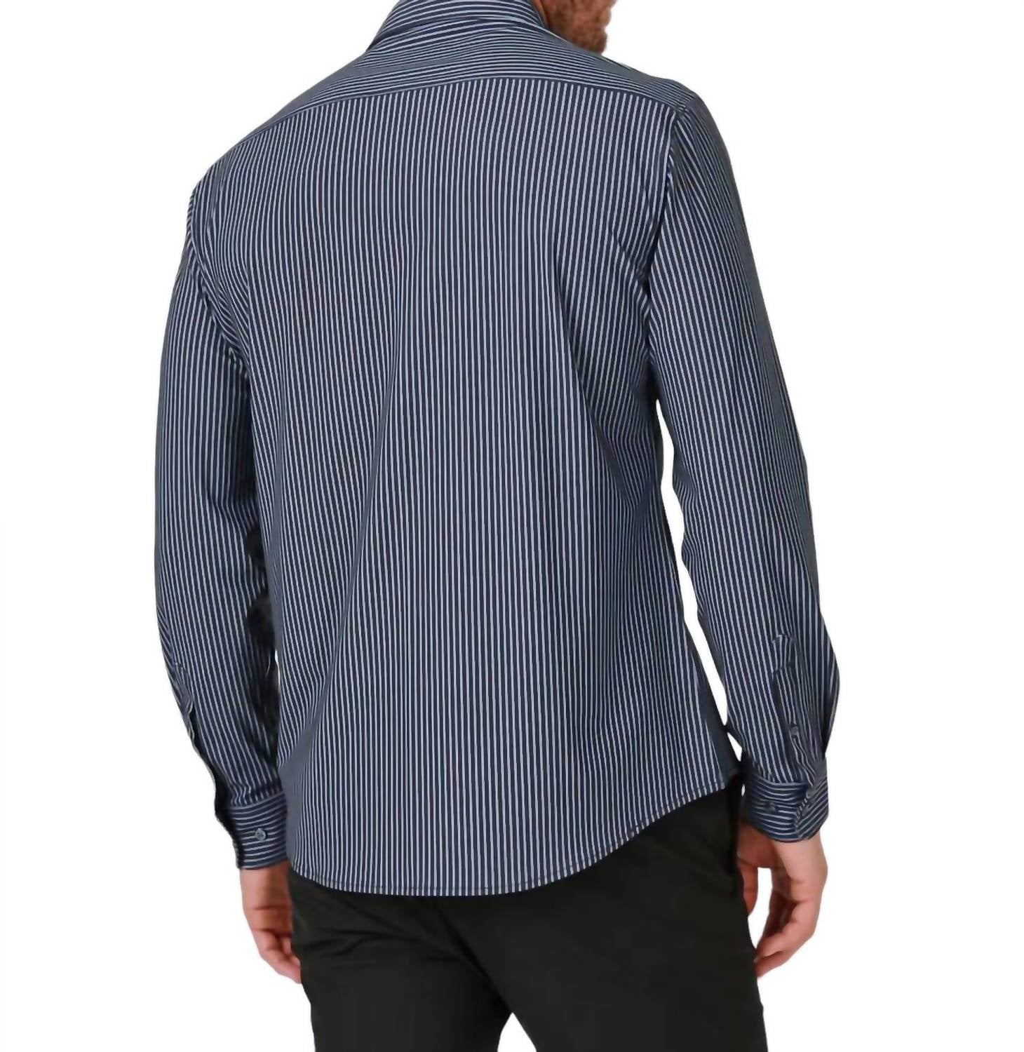Introducing the Blaine Long Sleeve Shirt by 7Diamonds, an exemplary blend of comfort and style in classic black. This men's casual button-down shirt features long sleeves, a collar neckline, and a button closure, perfect for transitioning effortlessly from day to night. Crafted from durable polyester, it offers 4-way stretch, moisture-wicking properties, and wrinkle resistance to keep you looking sharp and feeling fresh. Easy to care for, simply machine wash and enjoy the performance shirt you won't want to take off.