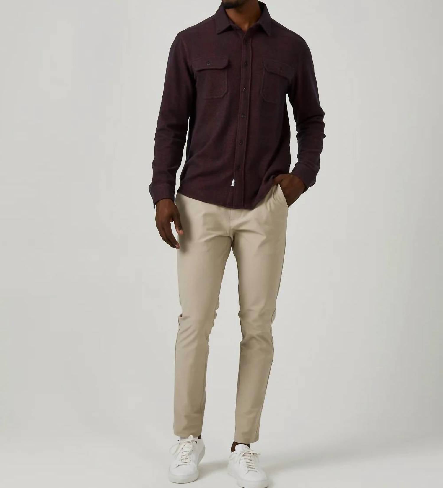 Presenting the Generation Solid Shirt by 7Diamonds in a striking burnt orange, perfect for men seeking comfort and style. This long sleeve tee is crafted with a breathable double-knit jacquard weave, offering a 4-way stretch for maximum movement. Composition: 65% Polyester, 30% Rayon, 5% Spandex. Closure: Button closure. Care is a breeze with machine wash on cold delicate cycle; cool iron if needed and hang to dry.
