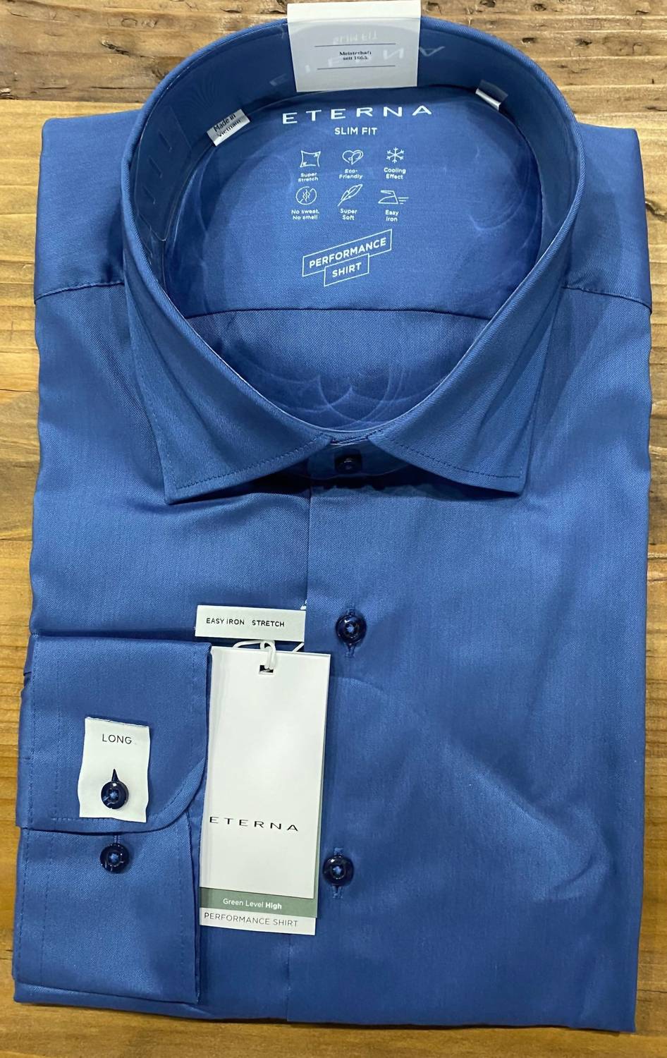 The Eterna Men's Performance Shirt in Ocean is a sophisticated choice for any occasion, with a non-iron feature that keeps you looking sharp. This long sleeve shirt is crafted from 100% cotton poplin, offering a lightweight and breathable feel, perfect for summer days. Its classic Kent collar and adjustable cuffs add a touch of refined style, suitable for both workwear and evening events. Closure: Button closure.