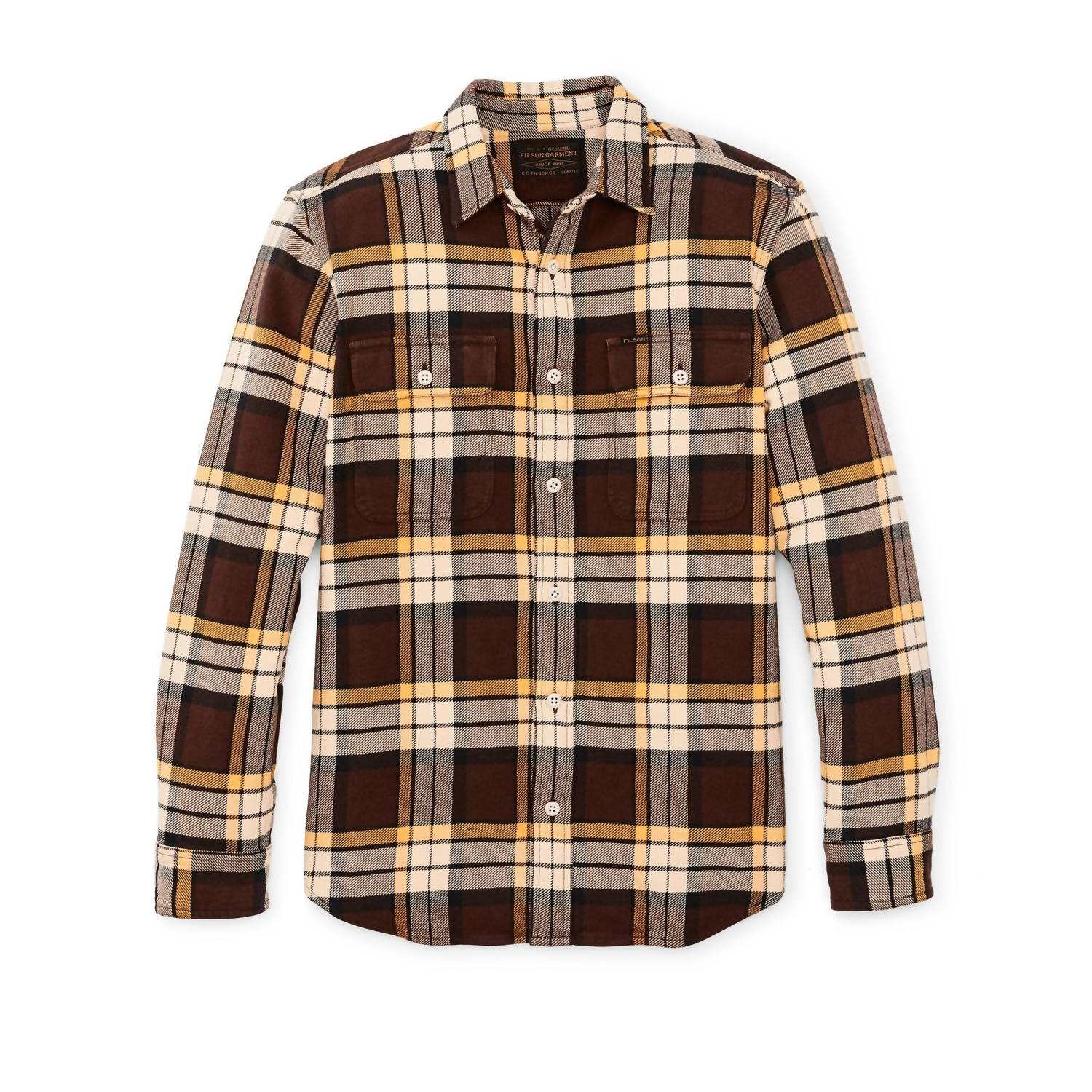 This button down shirt is comfortable yet polished. Experience the enduring style and comfort of the Vintage Flannel Work Button-front Shirt by FILSON, perfect for chilly days and versatile enough for a dinner party or Thanksgiving gathering. This shirt features long sleeves and is crafted from thick, breathable 8.1-oz. cotton twill with a brushed-twill interior for extra warmth and softness. Constructed with durability in mind, it includes double-needle construction, flat felled seams, and military-grade melamine buttons for the front closure and adjustable cuffs. Care is uncomplicated with its machine washable and tumble dry-friendly design.