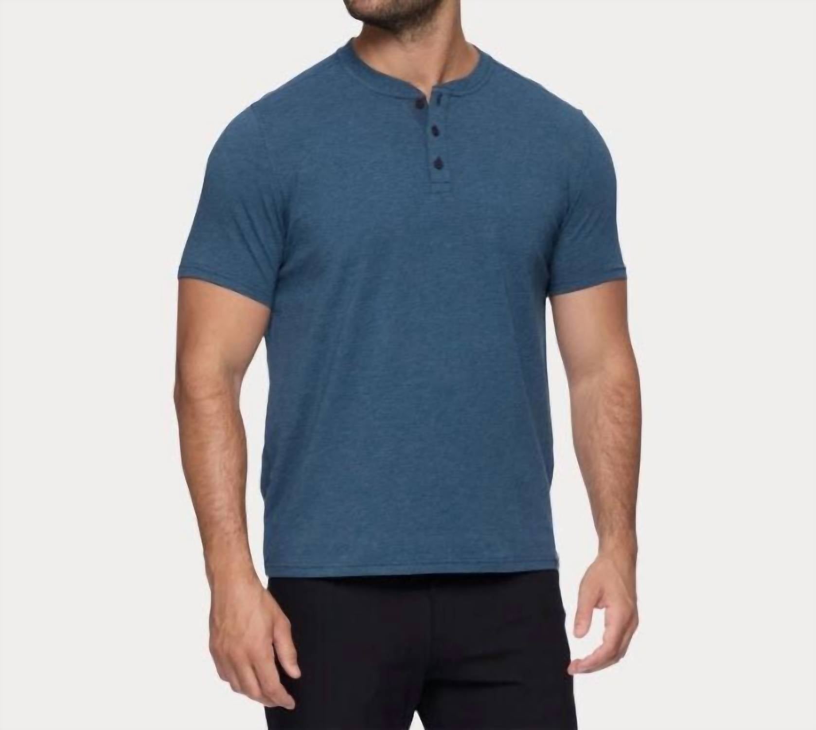 Discover the Essential Stretch Comfort Henley Shirt by Flags & Anthem, a piece ideal for summer style. This short sleeve shirt is crafted from a lightweight, breathable cotton blend, offering ultimate softness and stretch for everyday wear. It features a traditional three-button front placket and is designed in a tailored athletic fit, with a medium length of 28.5 inches from the highest shoulder point. Imported and easy to care for, simply machine wash to maintain its comfort and quality. Ryan, standing at 6'2" and weighing 185 lbs, wears a size medium. 68% Cotton/24% Lyocell/8% Spandex.