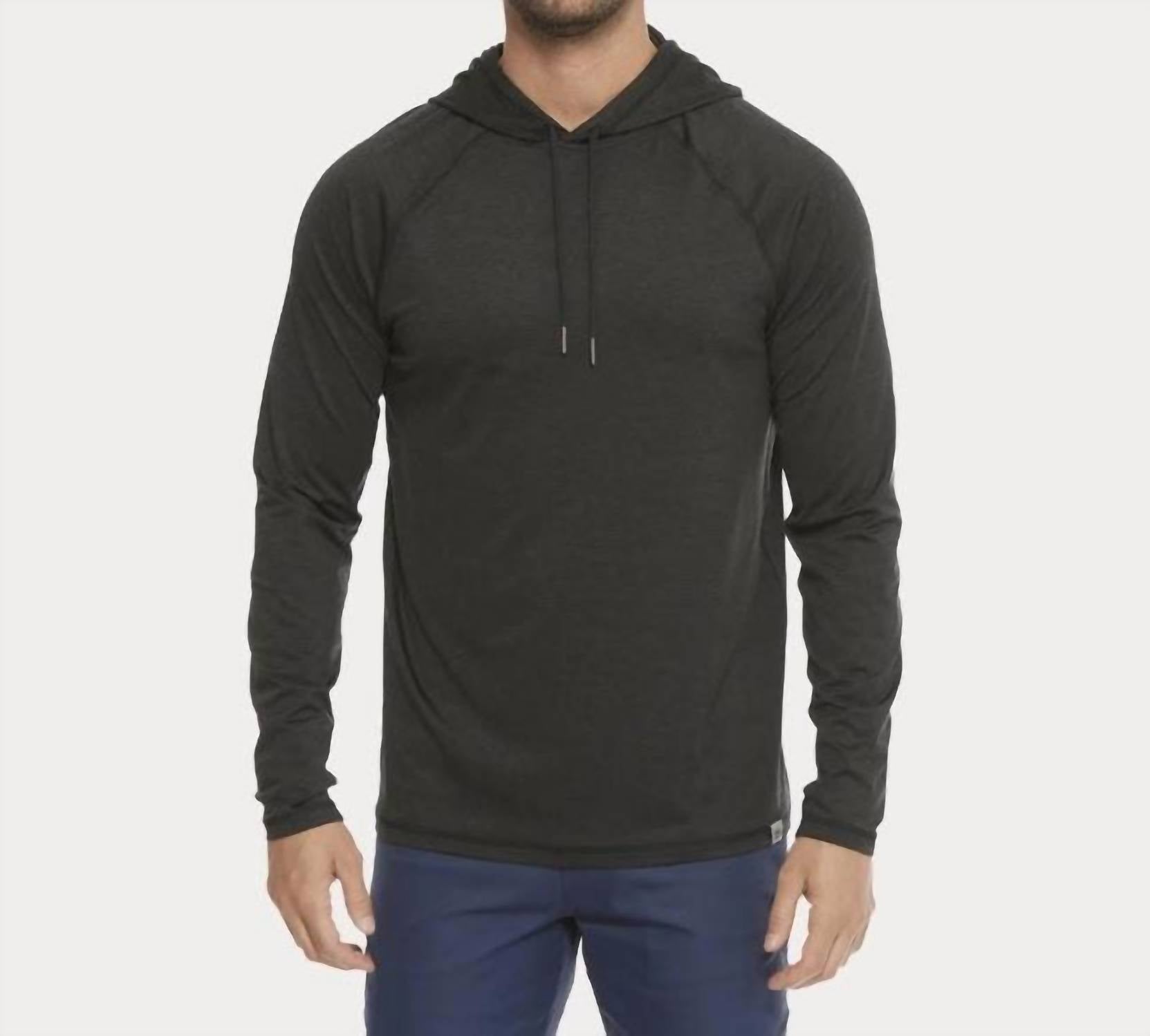 The Flags & Anthem Madflex Victory Performance Hoodie in Charcoal Heather is perfect for the active man seeking both style and functionality. Featuring long sleeves with thumbholes, this hoodie is crafted from 88% Polyester and 12% Spandex for enhanced stretch and comfort. Closure: Adjustable drawstring. Care: Machine wash. Tailored for an athletic fit, it includes UPF sun protection and moisture-wicking properties. Medium: 28.5” length from highest point shoulder. Ryan, standing at 6'2" and weighing 185 lbs, wears a size medium.