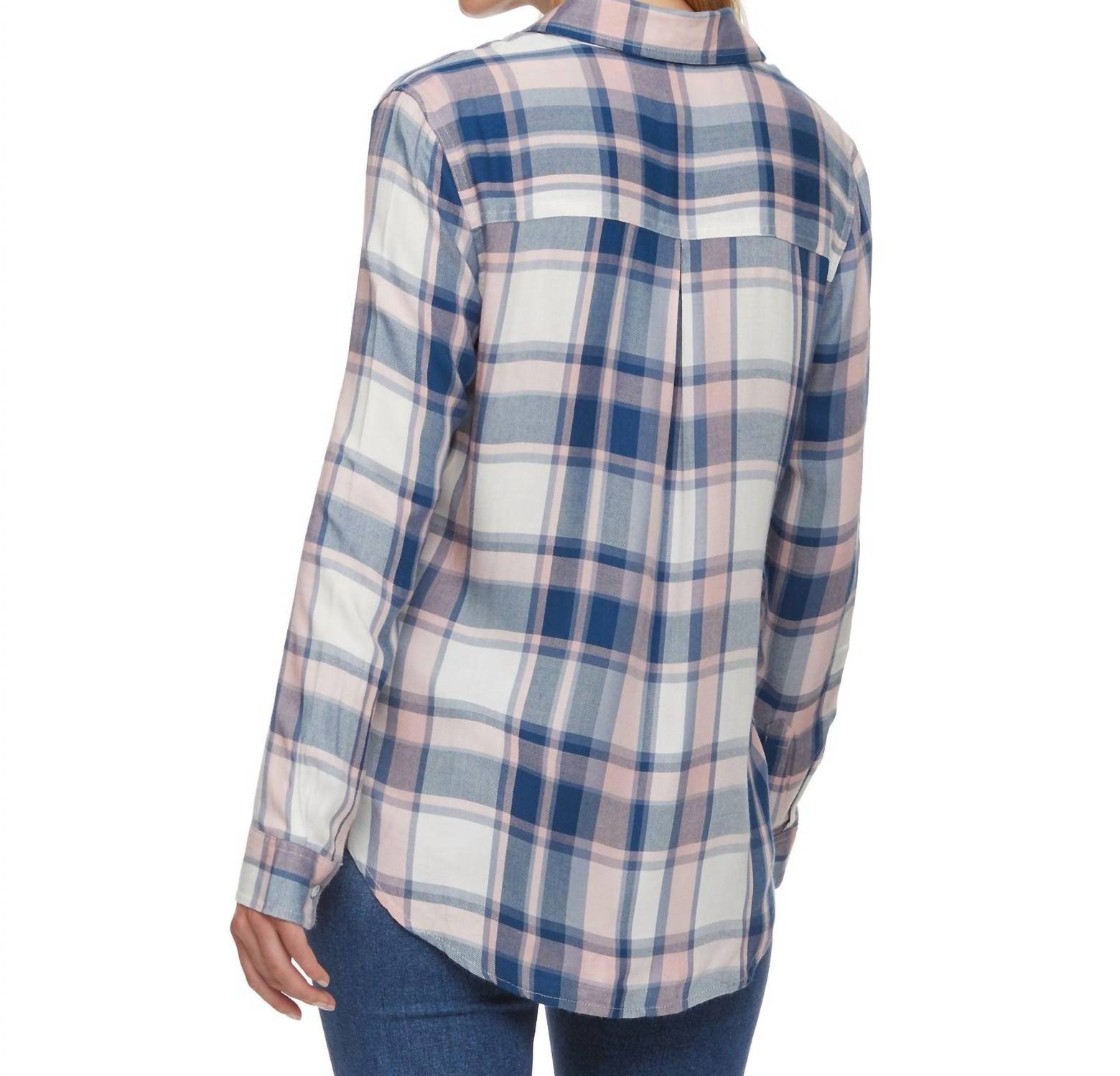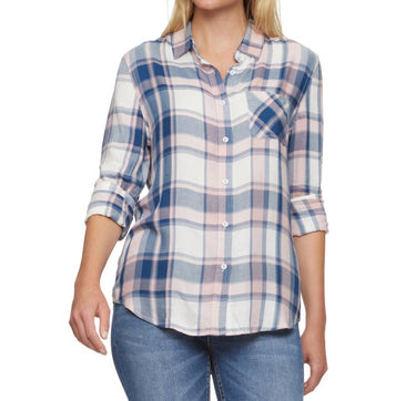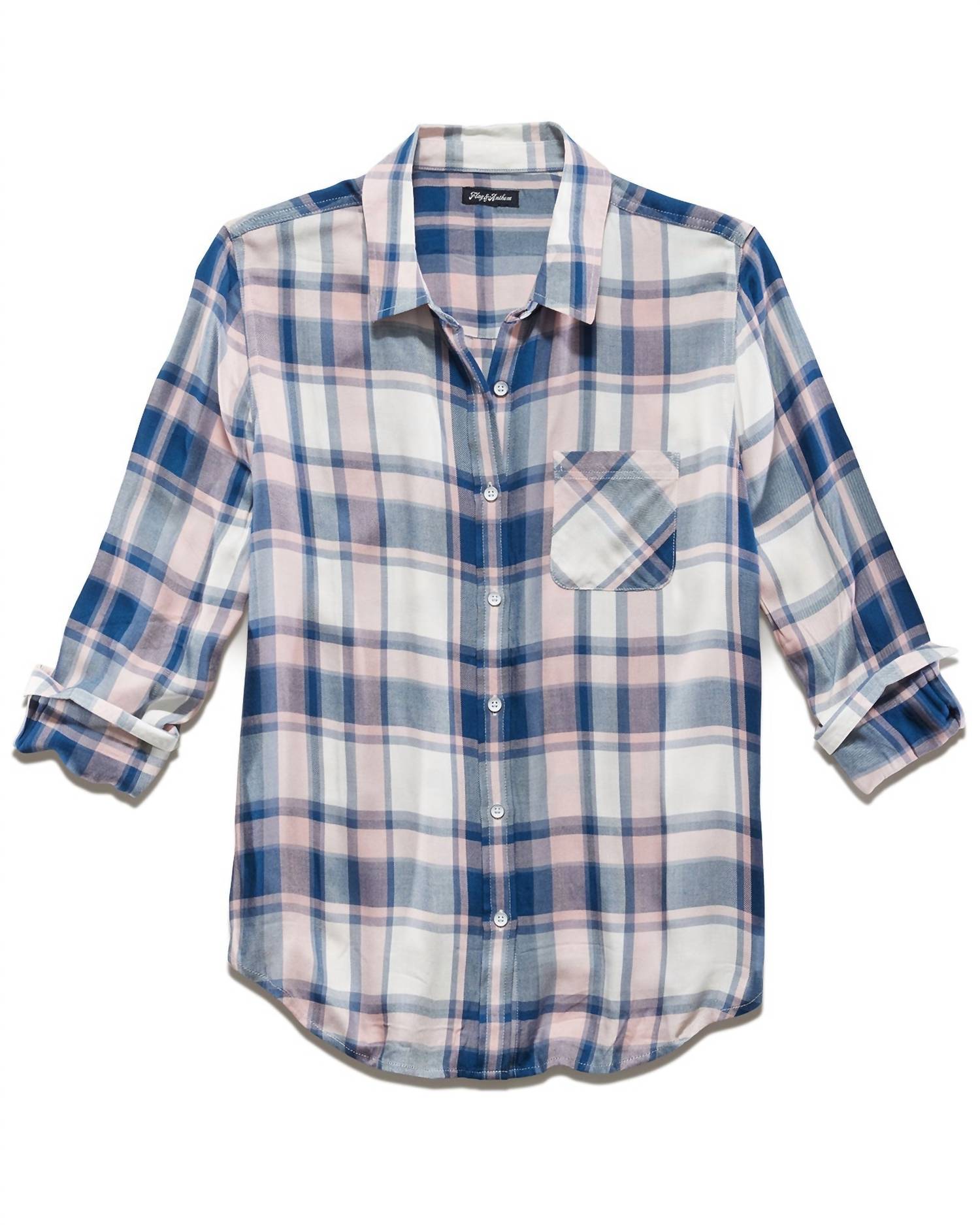 Ideal choice for all-day comfort and casual style. Features long sleeves and collared neckline. Crafted from 100% rayon. Ensuring a soft and versatile wear. Designed with a slightly curved hem and contrast fabric inside the neckband and cuffs. Includes a single front chest pocket. Machine wash. Length measures 26.5 inches.