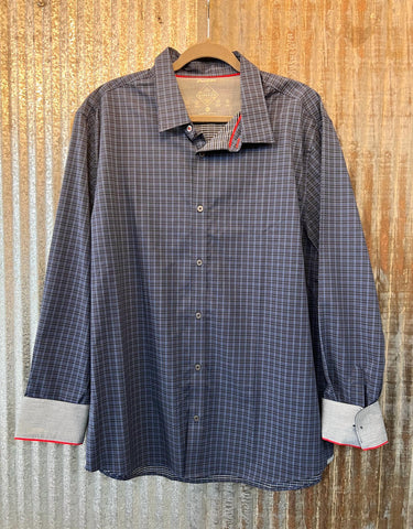 Discover the Men's Gridley Long Sleeve Performance Icon Shirt by Flags & Anthem, a stylish piece in a patterned navy design. This casual button-down shirt features long sleeves and a smart collar, perfect for any occasion. Closure is secured with a classic button closure. Please follow specific care instructions provided separately.