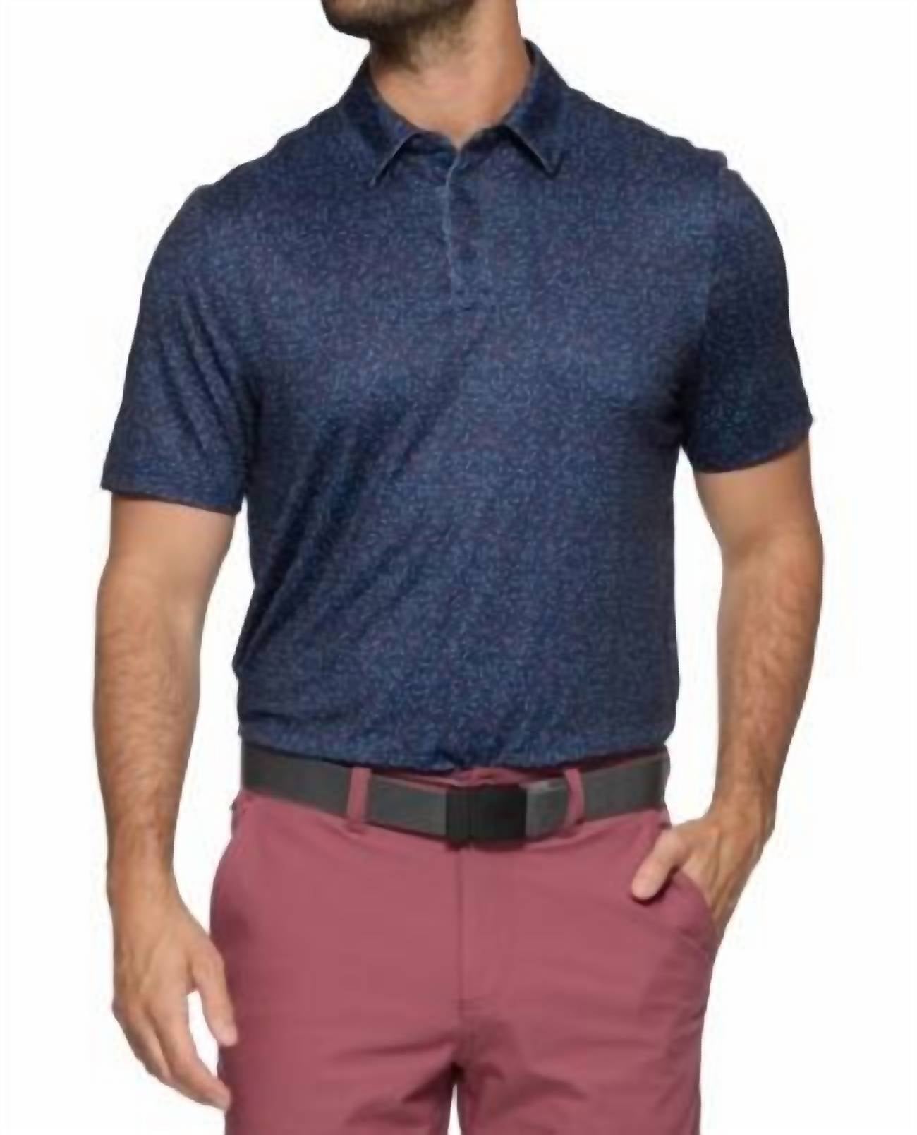 Introducing the Scofield Short Sleeve Americana Martini Print Performance Polo by Flags & Anthem, a stylish choice for any occasion. This Navy Combo polo boasts a patterned design and features a comfortable collar with a classic button closure. It's crafted to enhance your wardrobe with both versatility and performance. Ideal for workwear or church, it fits effortlessly into the Fall season and makes a great Father's Day gift.