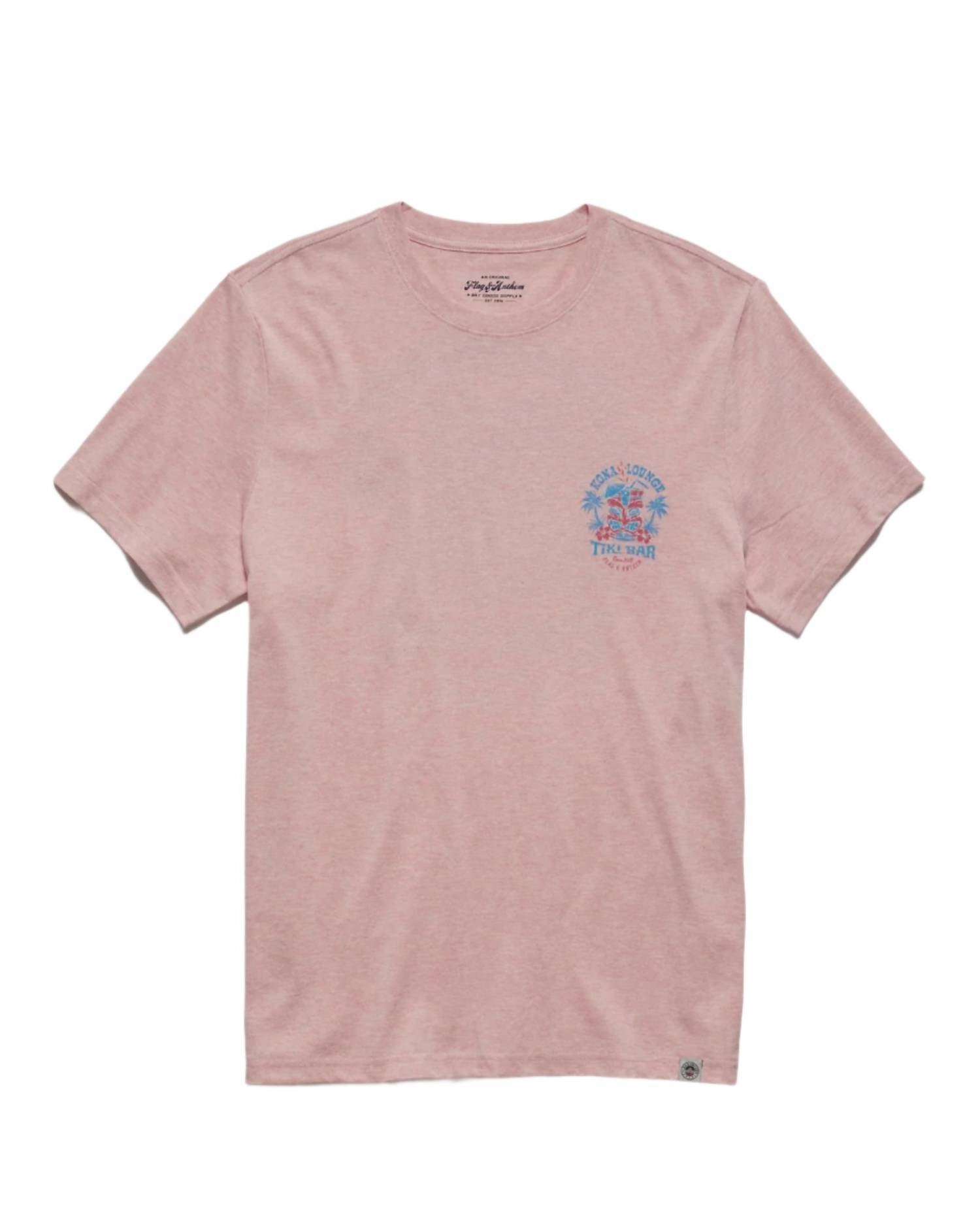 Introducing the Tiki Bar Short Sleeve Tee by Flags & Anthem, a perfect blend of comfort and style in Coral Heather. With short sleeves and a classic crew neckline, this graphic tee offers a tailored athletic fit, ideal for casual summer wear. Composition: 58% Cotton, 42% Polyester. Closure: Pull on. Care: Machine wash and tumble dry. Garment length: 28.5” (size Medium).