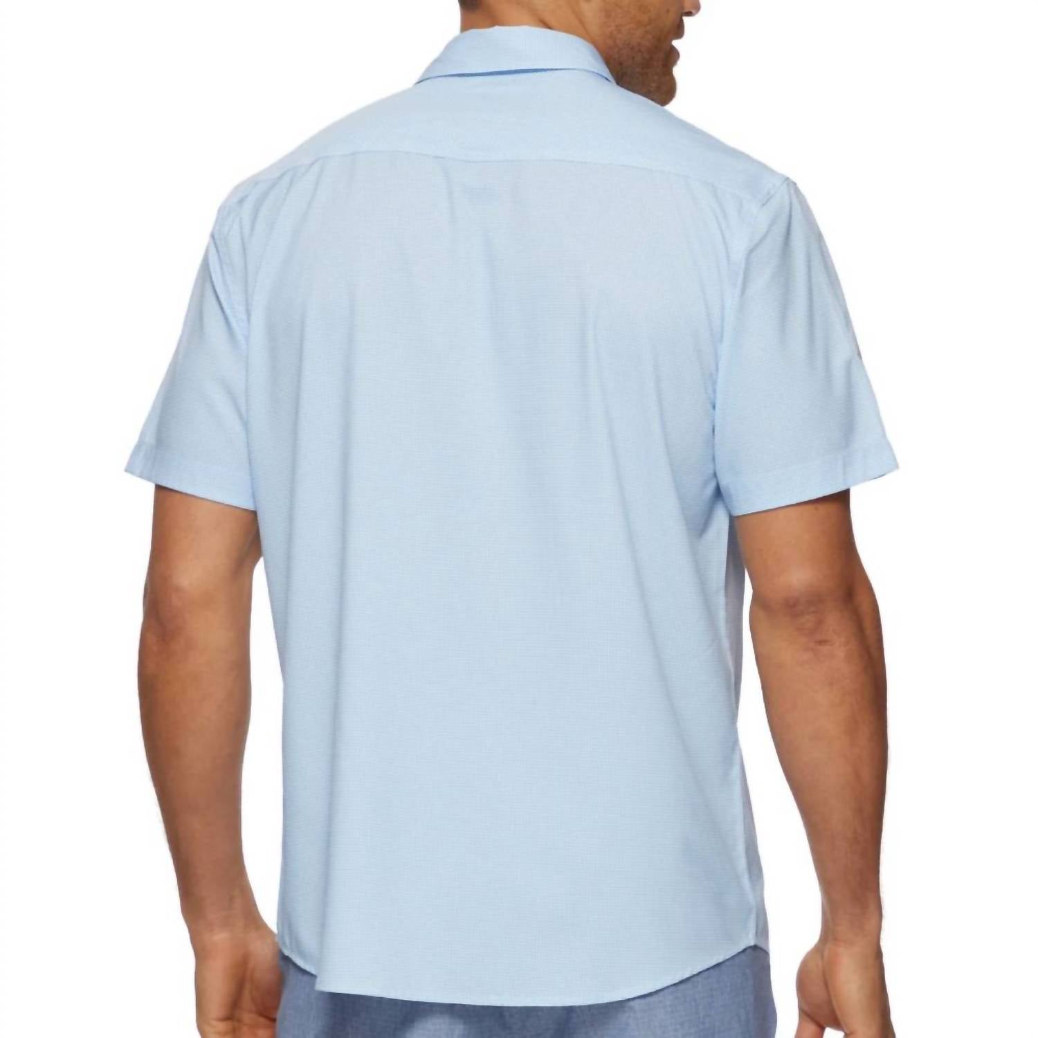 Experience superior comfort and protection with the Varnell Short Sleeve Performance Shirt by Flags & Anthem, perfect for warm weather days. Crafted from 92% Polyester and 8% Spandex, this shirt features a light blue/white color palette and short sleeves for a breathable fit. It boasts pearlized snap closures, dual front flap pockets, and a hidden lens cleaner at the hem for added convenience. Care for this tailored athletic fit shirt is easy with machine wash and tumble dry instructions. Enjoy the benefits of moisture wicking, quick drying, and UPF protection with this workwear staple.