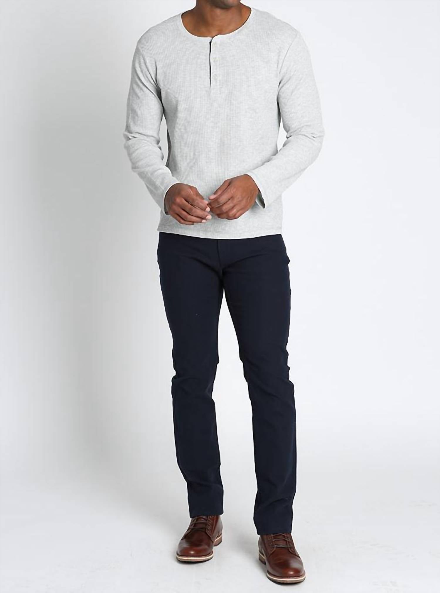 Experience ultimate comfort with the Classic Waffle Henley Shirt by JACHS NEW YORK, featuring long sleeves in a timeless hue. This piece is crafted from a 60% cotton and 40% polyester blend, offering a cozy, textured feel perfect for fall. It boasts a classic fit and button closure, ideal for preppy, travel-ready ensembles. Imported quality ensures reliable style, making it a Thanksgiving holiday staple.