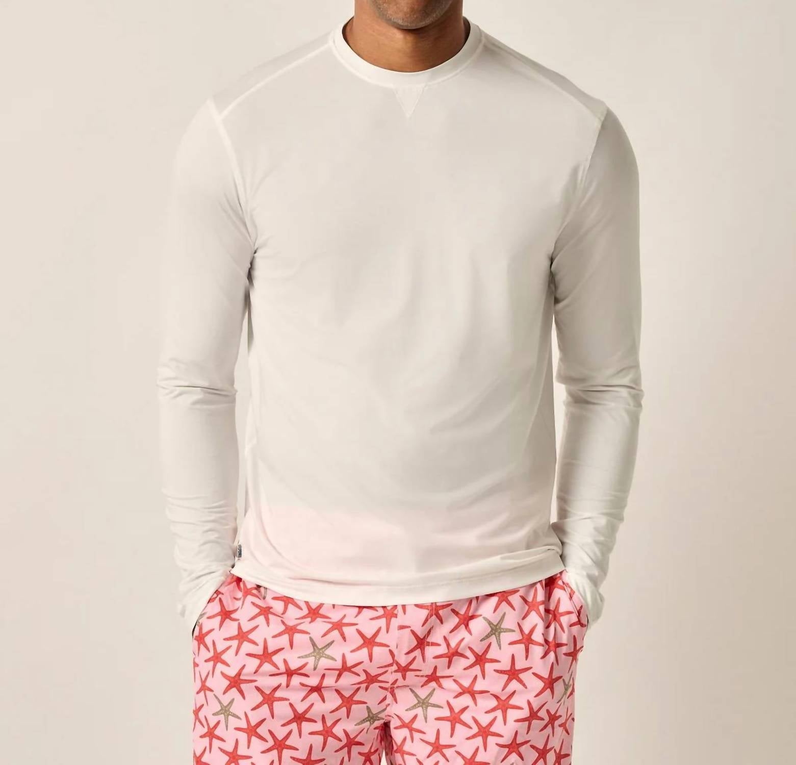 Experience ultimate sun protection with the Johnnie-O Basin Performance Long Sleeve Sun Shirt, crafted for active summer days. Designed with a solid white color, it features a crewneck and long sleeves for complete coverage, offering UPF 50 sun protection. Made from a blend of 88% Polyester and 12% Spandex, this pull-on activewear tee ensures flexibility and comfort. Care is simple with machine washing and tumble drying, making it a perfect addition to your fitness or workout wardrobe.