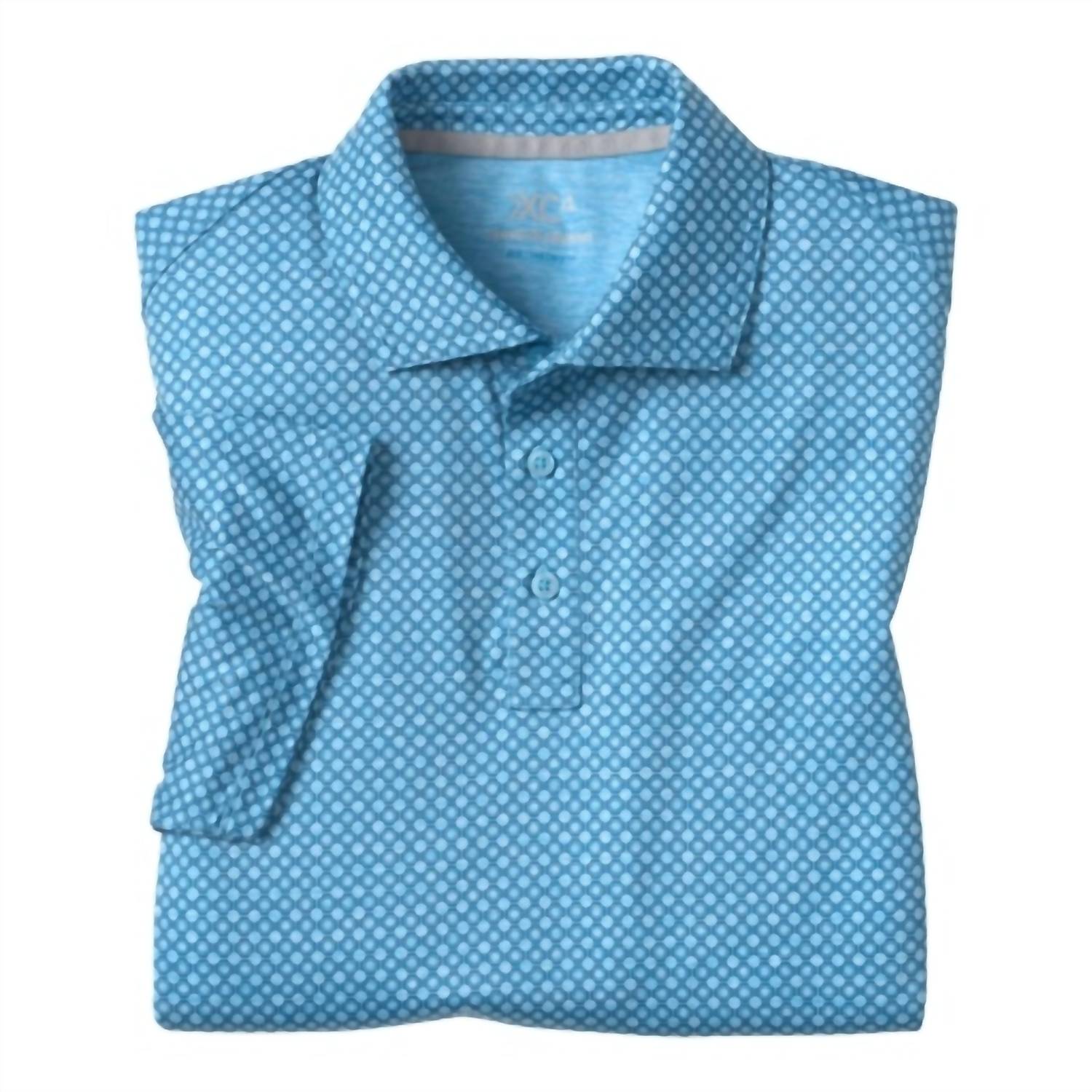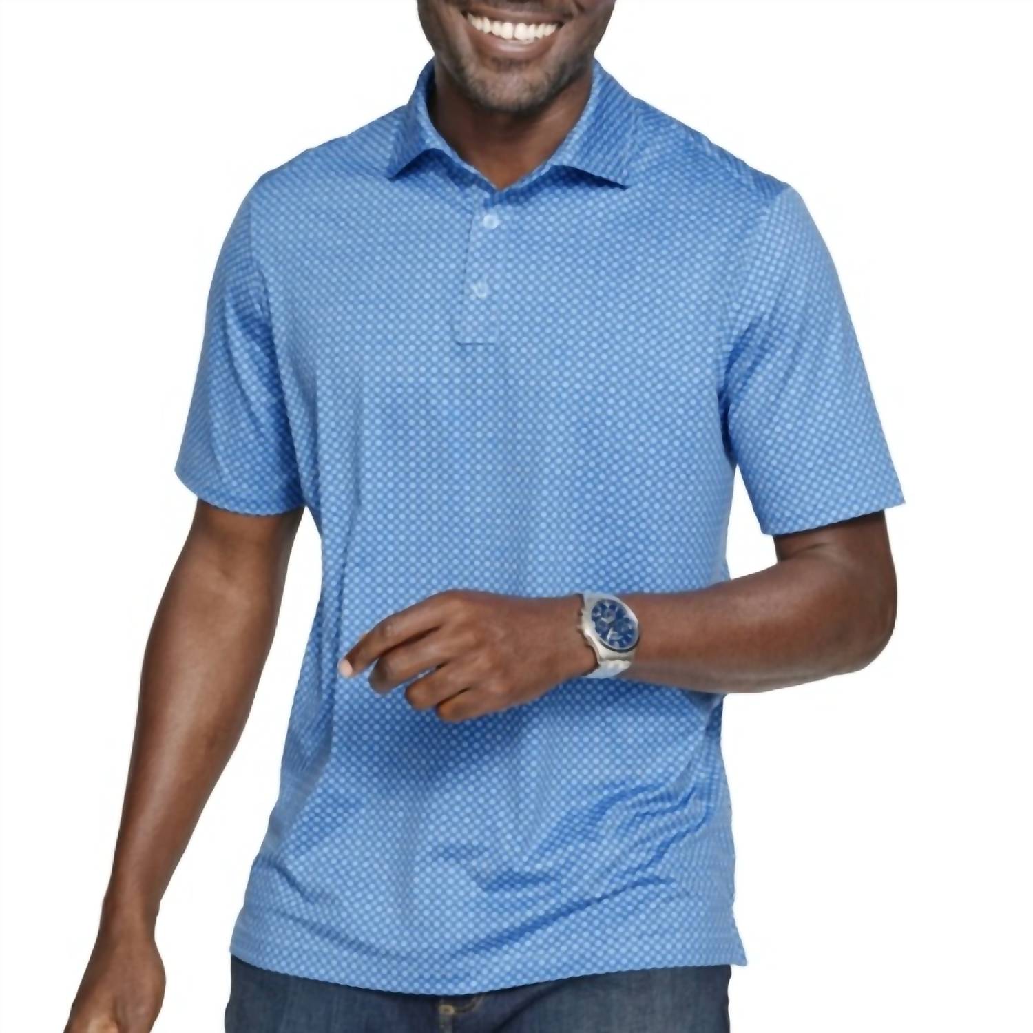 Elevate your style with the Johnston & Murphy XC4 Performance Print Polo in Geo Circle/Blue, designed for the active man. This short sleeve polo features a classic collar and a button closure, crafted from breathable, moisture-wicking fabric to keep you cool. Perfect for game day or summer outings, it showcases a patterned design that aligns with the maximalist trend. Care is simple with machine wash instructions.