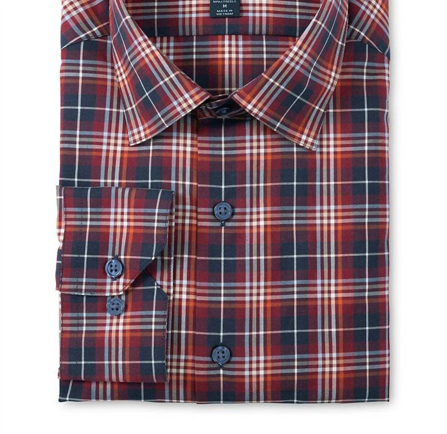 Embrace casual sophistication with the Men's Performance Collegiate Plaid Shirt by Scott Barber, rendered in a rich Port hue. This long sleeve shirt is crafted from a superfine and soft cotton/lyocell blend with a crisp plaid pattern. Featuring a point collar, a French placket, and back knife pleats, it is designed for both comfort and style. Closure: Button closure. Care: Machine wash warm.