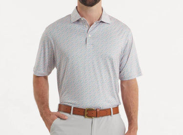 Made from a lightweight blend of 92% Polyester and 8% Spandex, this polo offers moisture-wicking, quick-dry comfort with four-way stretch for maximum mobility. Designed with a classic three-button placket and all-over print, it’s versatile enough for summer adventures, the golf course, or client meetings.