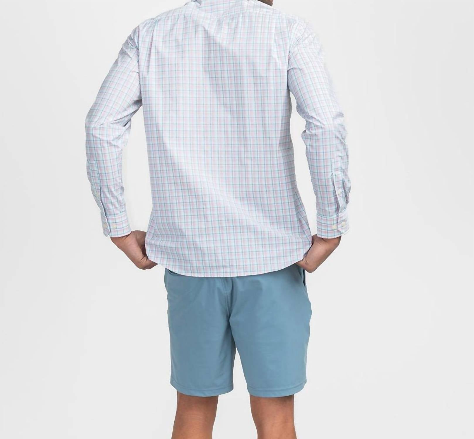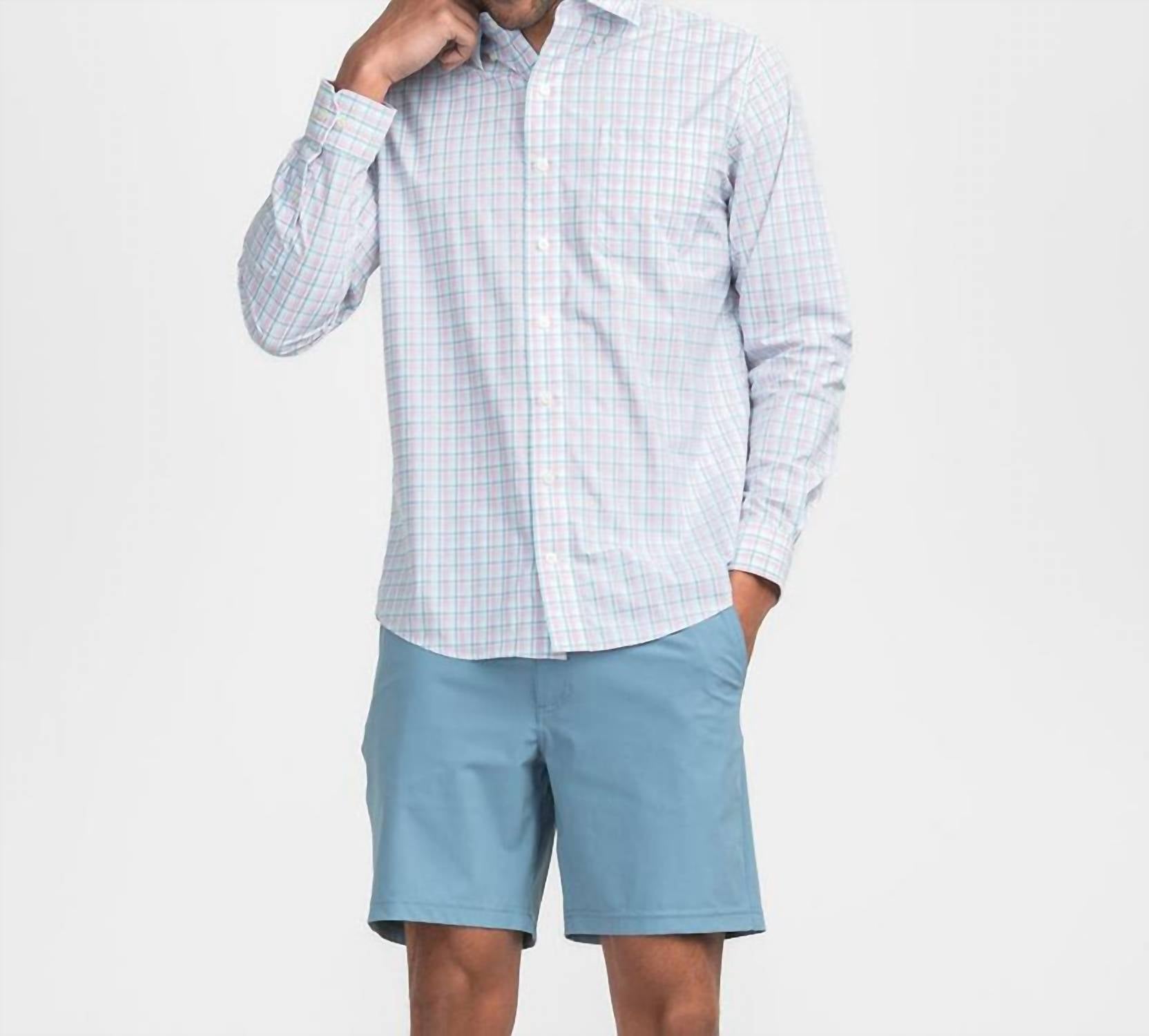 Introducing the Magnolia Plaid Performance Button Down Shirt by Southern Shirt Company, a must-have for those who value style and functionality. This Pacific Cooler plaid shirt features long sleeves and a classic collar, crafted from a blend of 95% Nylon and 5% Spandex for unmatched comfort and a modern fit. It includes practical features such as a convenient button closure and pockets, making it ideal for workwear or casual outings. Designed for easy care, this breathable, lightweight shirt is wrinkle-resistant, quick-drying, and machine washable with tumble dry instructions.