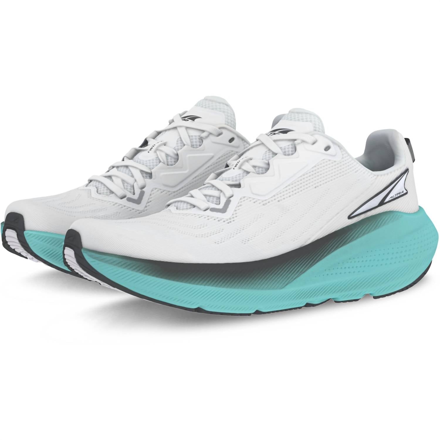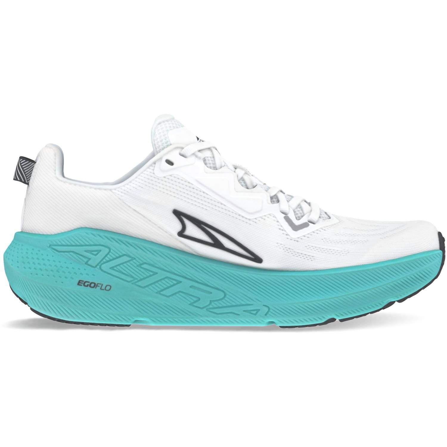 Elevate your running experience with the Women's FWD VIA Running Shoes by ALTRA, crafted to combine lightweight comfort and maximum cushioning. Designed in a stylish white and green, these athletic shoes feature a low 4mm drop with a retuned rocker shape geometry, engineered for smooth transitions and efficient toe-offs. The engineered spacer mesh upper offers enhanced breathability and a sleek appearance, while ALTRA's Original FootShape Fit provides ample room for your toes and midfoot. Perfect for fitness and workout sessions, these shoes boast a supercritical ALTRA EGO™ FLO midsole and a durable rubber outsole for a responsive ride.
