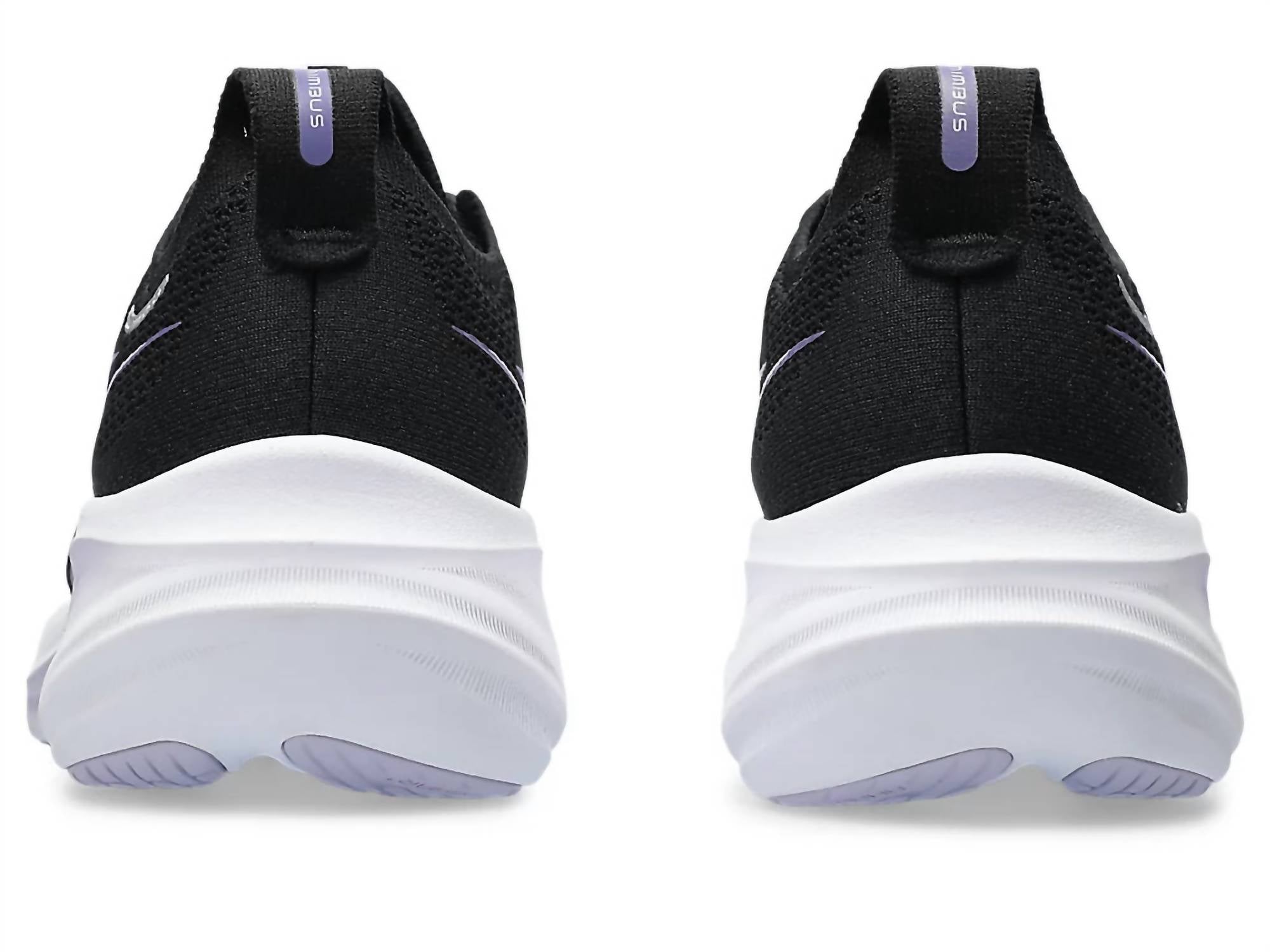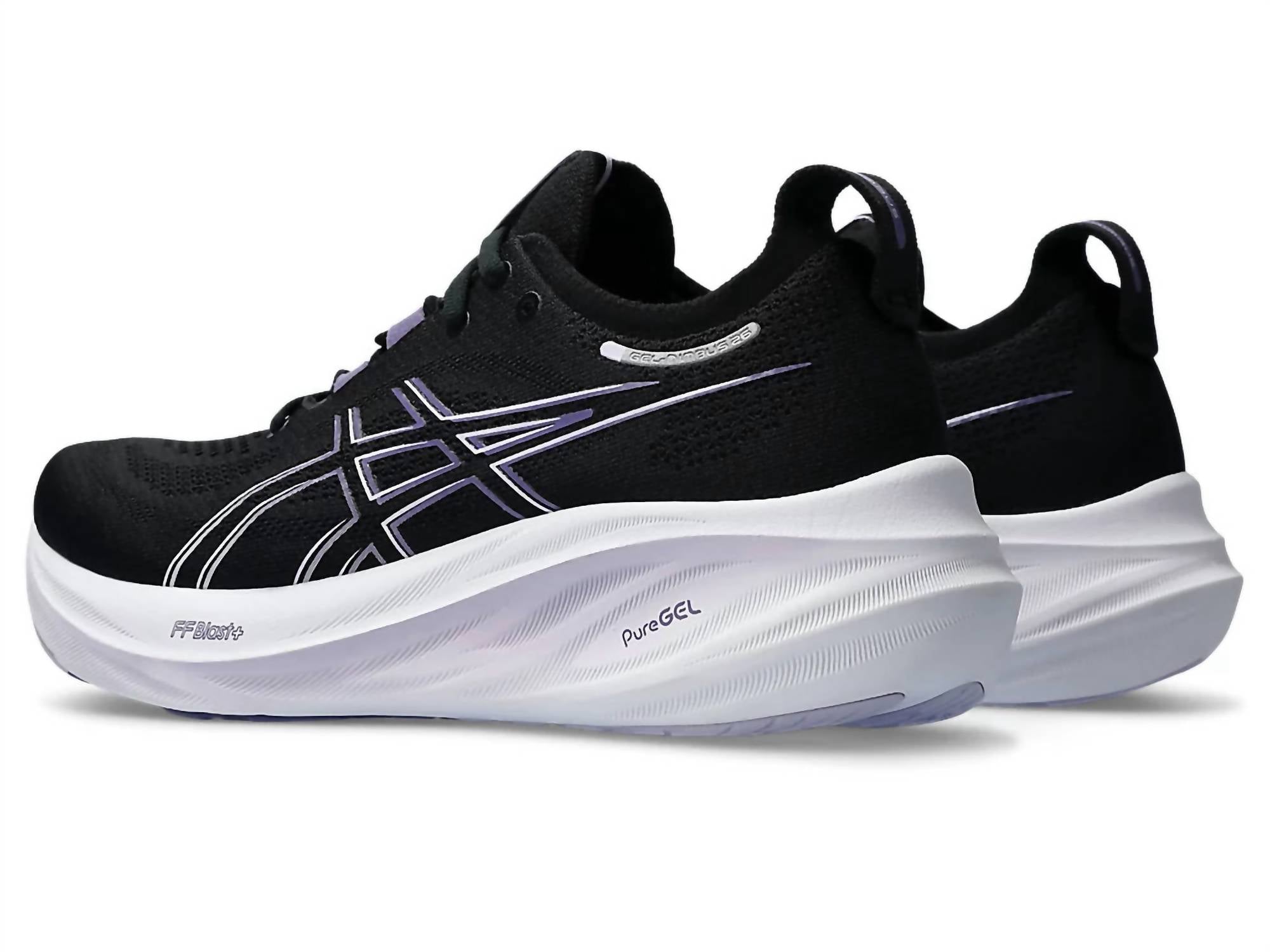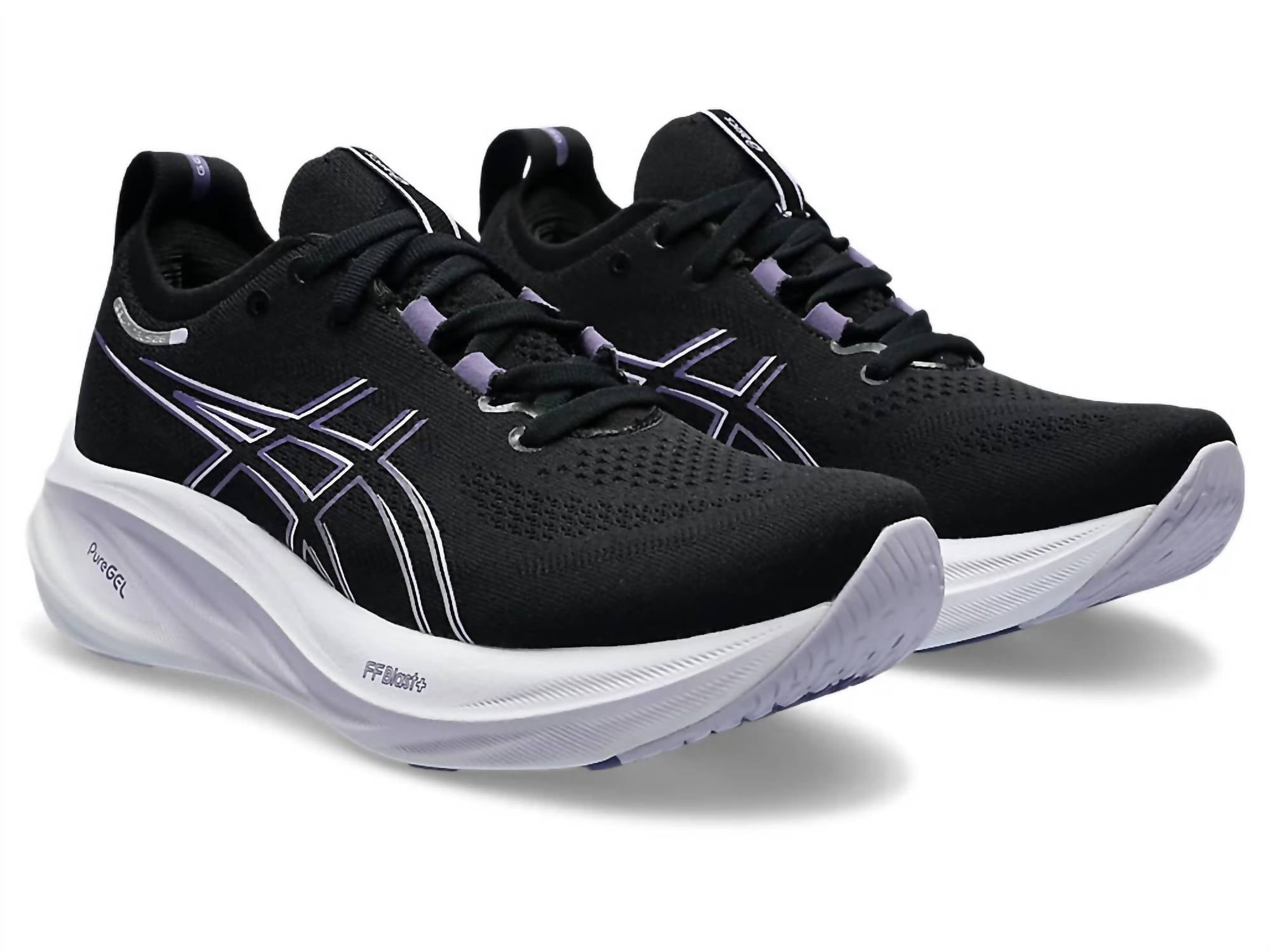 Step into comfort with the ASICS Women’s Gel Nimbus 26 Shoes in Black Dusty Purple, designed for an unparalleled running experience. Crafted from engineered nylon, these shoes feature a soft knit tongue and collar for a supportive fit. The innovative FF BLAST™ PLUS ECO cushioning ensures a lighter environmental impact, while the ASICS®GRIP™ outsole enhances traction and durability across various terrains. Style code: 1012B601.003, UPC: 197298178884.