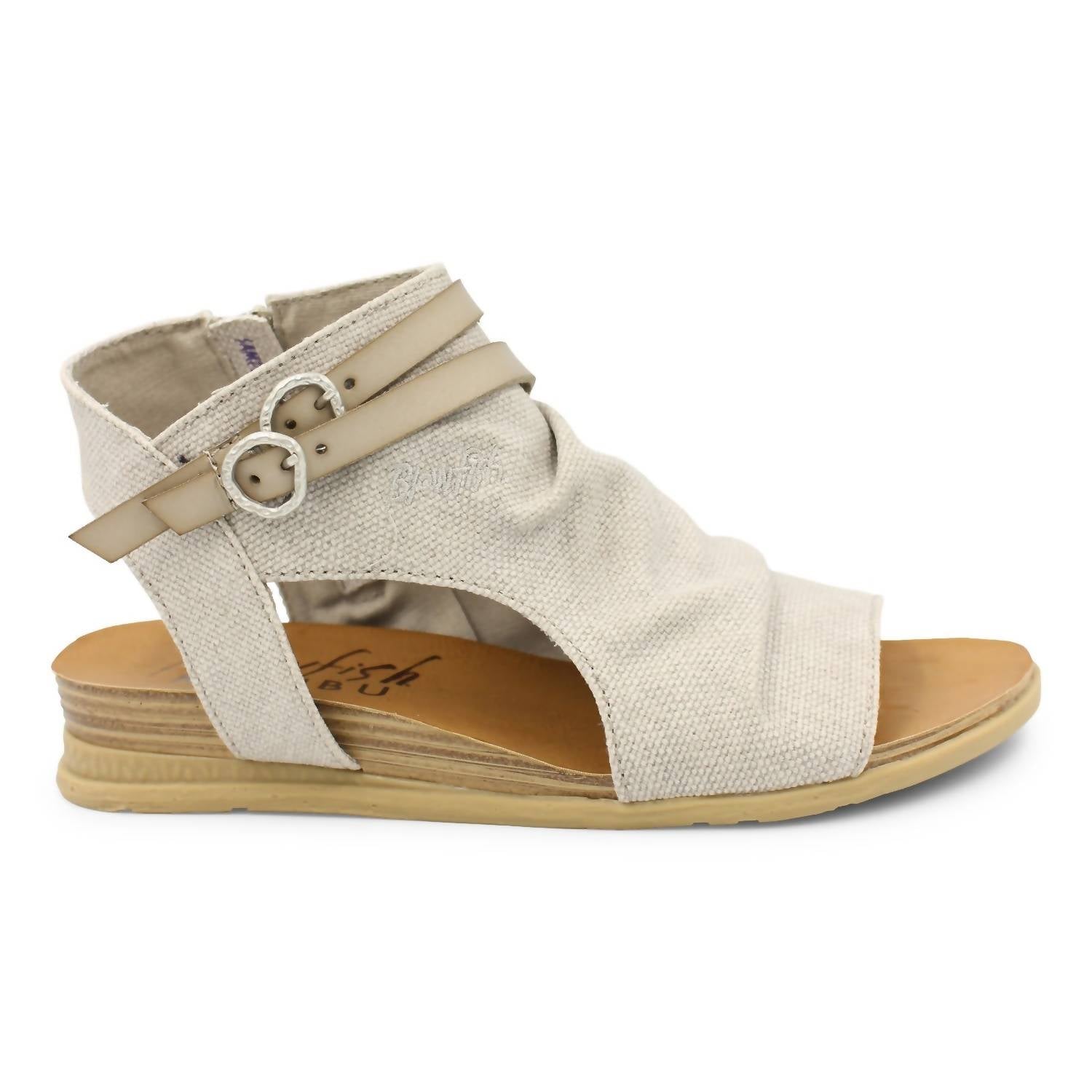 Experience style and comfort with the Women's Kiki Nana Flat Sandal by Blowfish, perfect for any summer occasion. These Zinc sandals feature an open almond toe with frayed edges and strappy leather accents, complemented by a convenient side zipper. The micro-wedge heel is 0.75 inches high, offering just the right amount of lift for all-day wear. Available in sizes 7 through 11, these sandals are true to size and ideal for both casual and dressy ensembles.