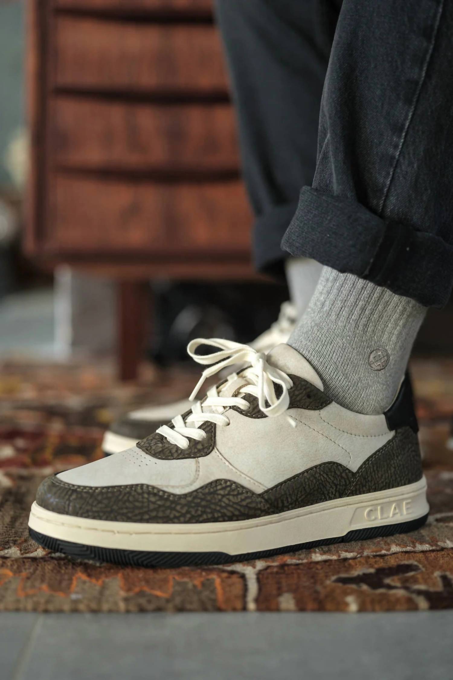 Introducing the Men's Sneakers by CLAE, a unique blend of skate culture and early race car driver footwear. Handcrafted from exquisite Italian Nappa leathers and soft Nubuck sourced from certified tanneries, these shoes assure both durability and style. The interior features a lining made from leather and recycled polyester, ensuring a comfortable fit that ages beautifully. Built on CLAE's Premium Court (PC) sole, these sneakers optimize traction, making them perfect for the streetwear trend and ideal for summer vacations.