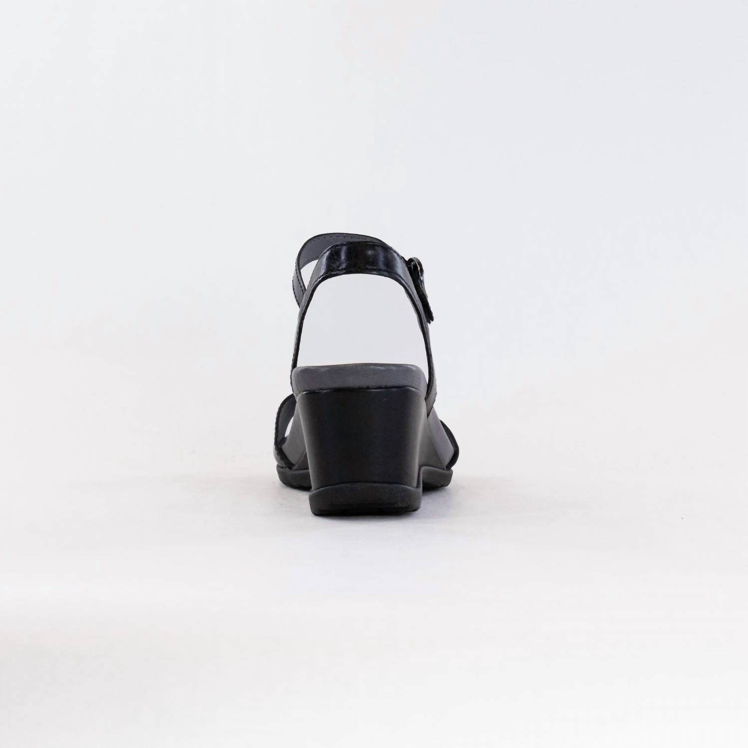 Step into style with the Women's Dansko Arielle Sandals, where classy black glazed kid leather and a stylish buckle design meet. Crafted with leather uppers and chrome-free leather linings, this wedge-heeled sandal features a full-grain leather-wrapped contoured EVA footbed with memory foam for ultimate comfort. The lightweight BPU wedge and TR rubber outsole ensure durability, while the Arielle boasts a heel height of 2.5 inches and a platform height of 0.75 inches. Recognized with the APMA Seal of Acceptance, these minimalist sandals make a perfect engagement or spring outing companion.