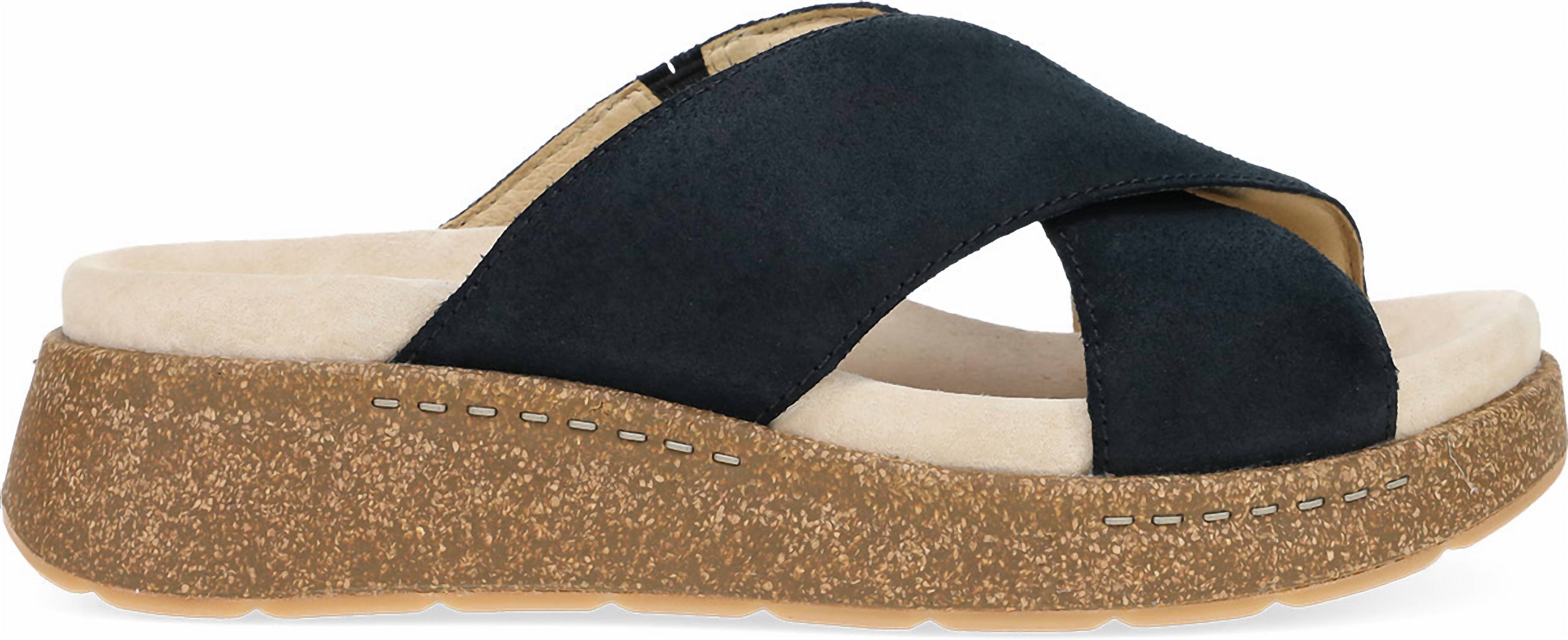 Step into comfort with the Dansko Women's Bridget Slide in sleek black, a perfect addition to your summer wardrobe. This sandal features a peep toe design with a platform cork sole, offering a stylish and breathable fit. The high-quality leather upper and chrome-free leather lining ensure durability and resistance to stains, enhanced by a dual-density cork/EVA midsole for support. With a 2.25-inch wedge heel and a 0.75-inch platform, these sandals combine style and function, making them ideal for various occasions like weddings and Mother's Day.